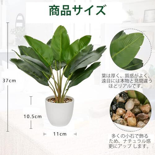 【仕様&高品質】人工観葉植物の高さは37CM、鉢のサイズは幅10.5CM*高さ11CMです。高品質のPE材質を採用しており、グラデーション・ハローの技法を用い、葉は自然に着色されています。葉は厚く、質感がよく、遠目には本物と見間違うほどリアルです。植物は内にワイヤーを含み、細部まで心入れの作りで、葉落ち無く何度も使えて長持ちできます。