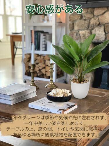 【一体型の鉢&ナチュラル感】プラスチック製の白い钵を使い、柔らかいので、ぶつけてもケガの心配がないです。鉢には小石が敷き詰められています。インテリアとしても馴染み、おしゃれな空間にしてくれます。フェイクグリーンをお部屋の中に置くことで、落ち着いた空間を作り出します。木製の雑貨やラタンミラーなどと組み合わせればナチュラルインテリア感を演出できます。