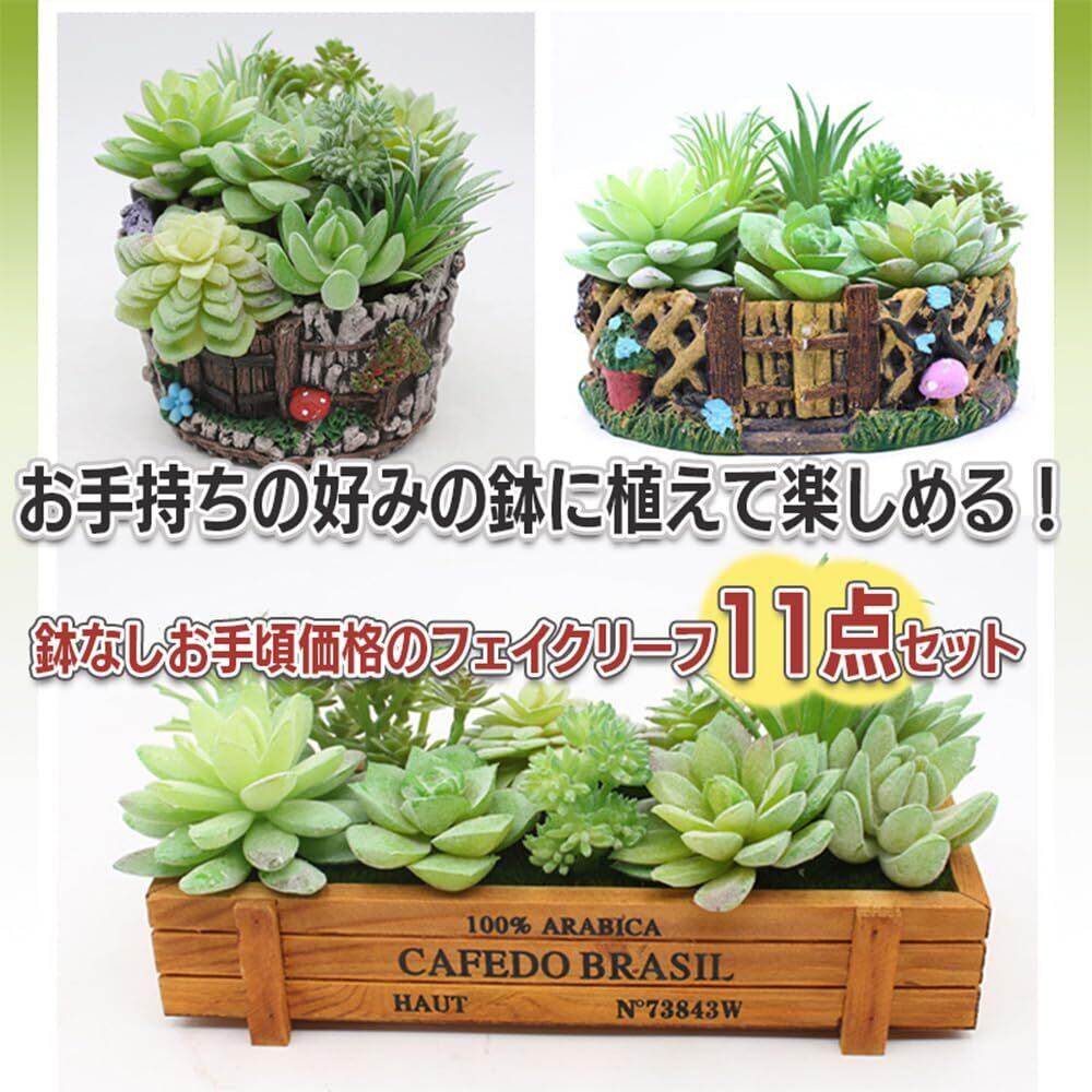 【美しい色彩と精巧なデザイン】 ひとつひとつの色が鮮やかで、本物そっくり、精巧なつくりのフェイクリーフ11点セットです。流行の多肉植物を取り入れたこのセットは、これひとつでお部屋がまるでカフェのような雰囲気に早変わりします。インテリアにこだわる方にぴったりのフェイクグリーンです。