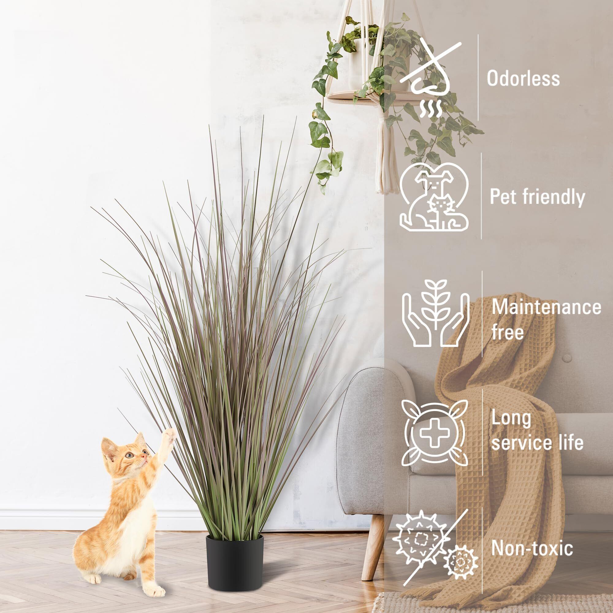 Worth フェイクグリーン 観葉植物 インテリア おしゃれ 人工観葉植物 装飾的 大型 造花 鉢植え 屋外 屋内 オフィス 和風装飾 光触媒 空気清浄 ムラサキ ネコジャラシ 120cm 2個セット