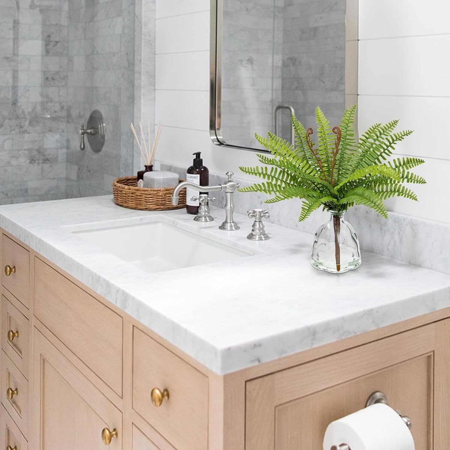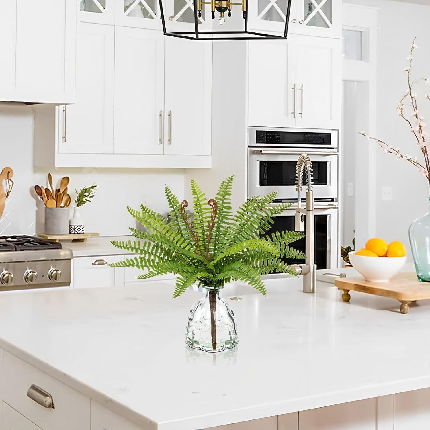 フェイクグリーン インテリアグリーン 人工 観葉植物 シダ 枝 造花 室内 簡単保养 水やり不要 害虫駆除不要 おしゃれ ギフト (シダ03(花瓶付き), 30CM)