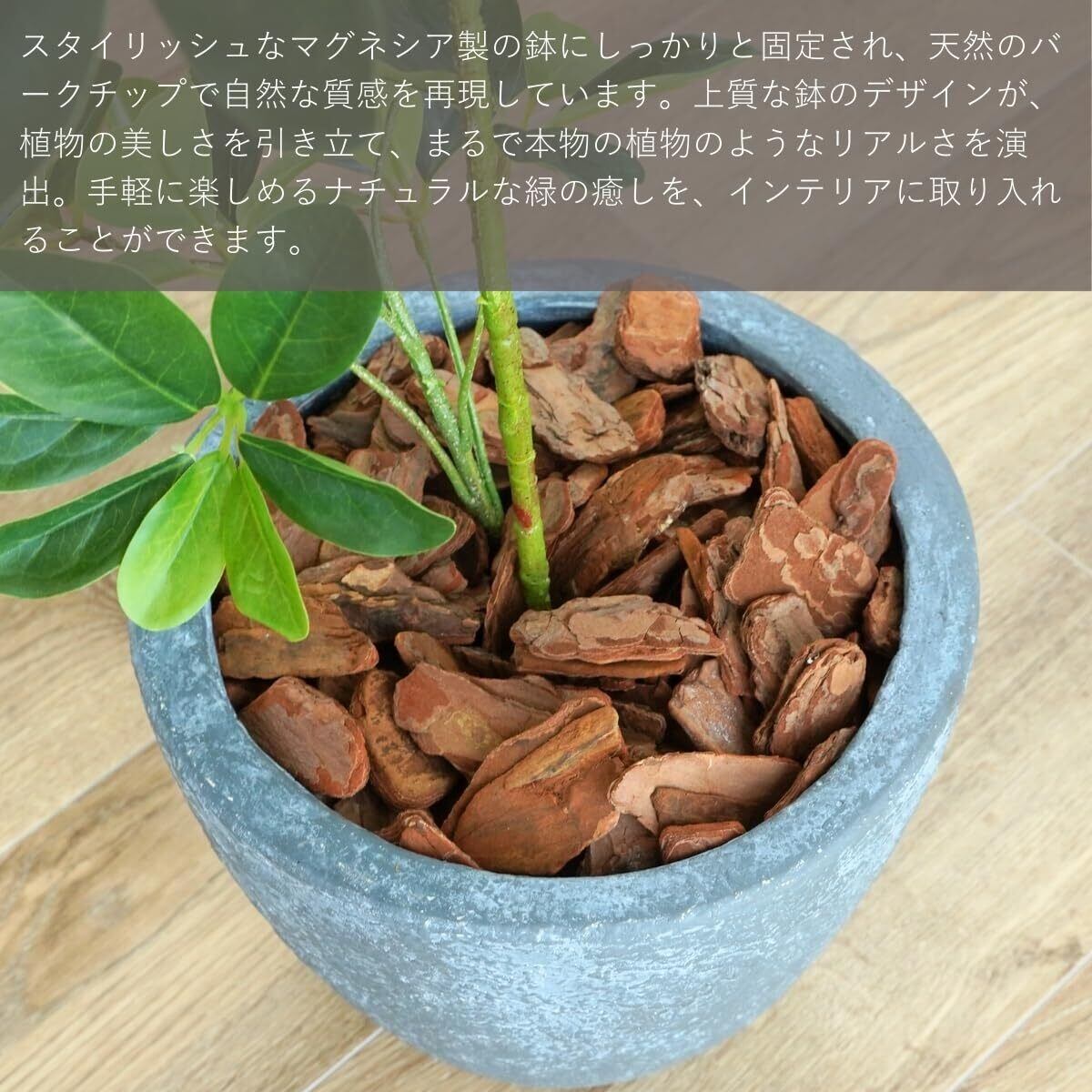 根元には天然のバークチップやファイバーを使用し、本物の植物のようなリアルさを再現しています。