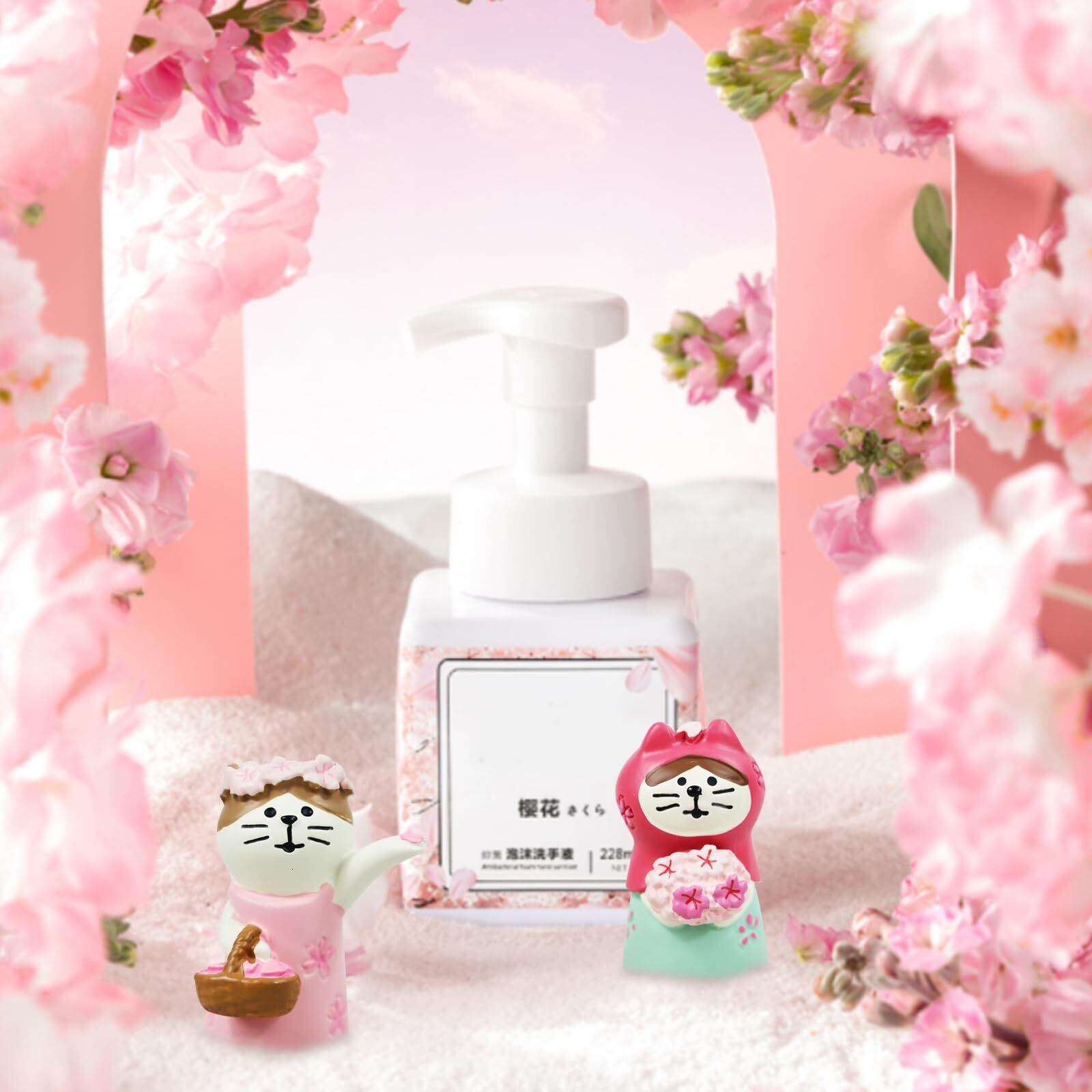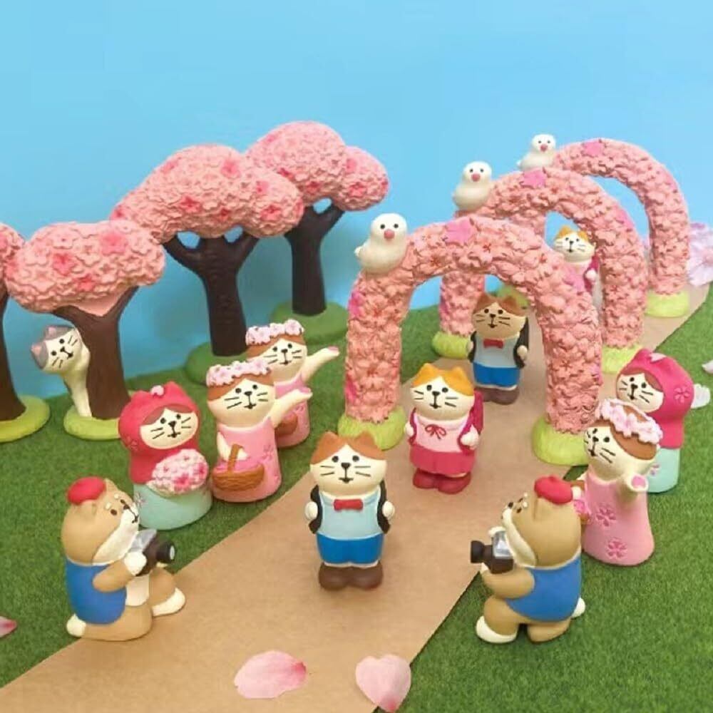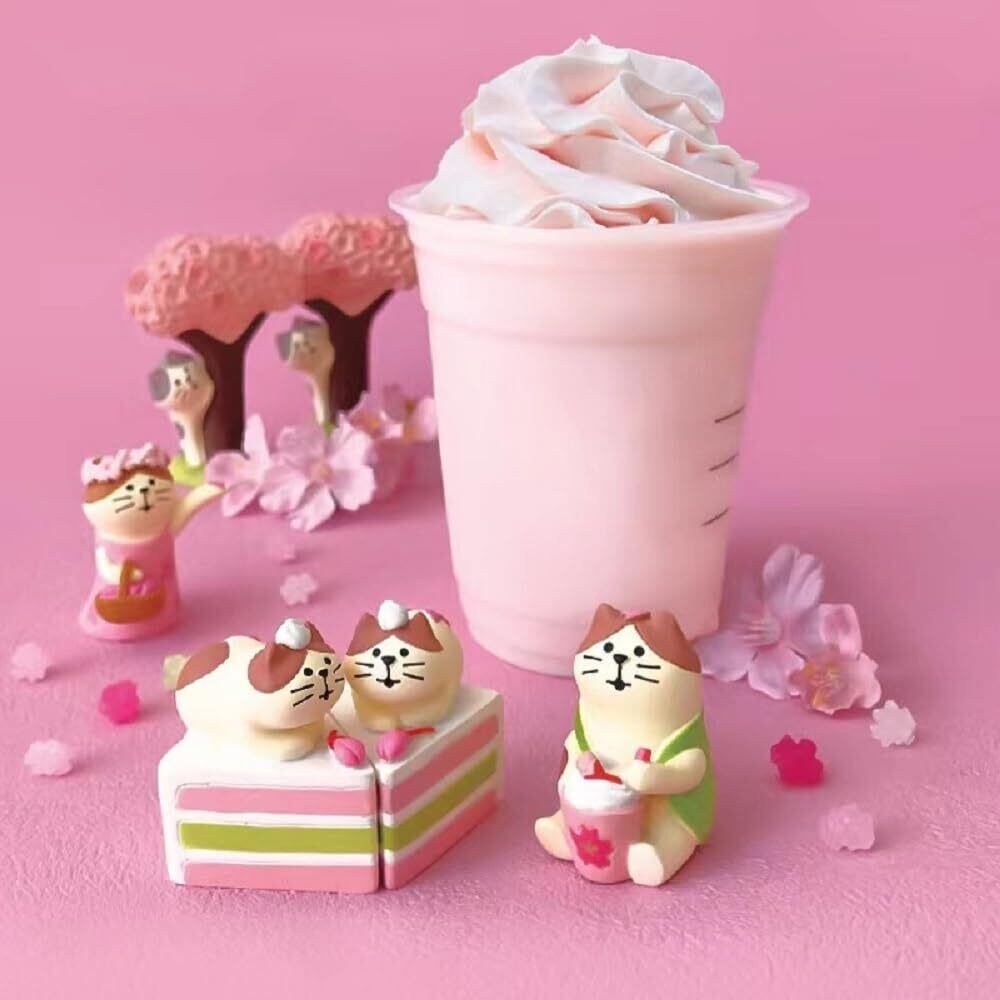 【可愛い猫フィギュア】:桜の花をモチーフにした可愛らしい猫のフィギュアは、テーブルの上の置物に最適です。桜の花びらを撒いている猫、桜を手に持っている猫、桜ラテを飲んでいる猫と、3匹とも異なる姿をしています。机やベッドサイドに飾ってもいいですし、ひな祭りやお花見会のお土産にもぴったりです。