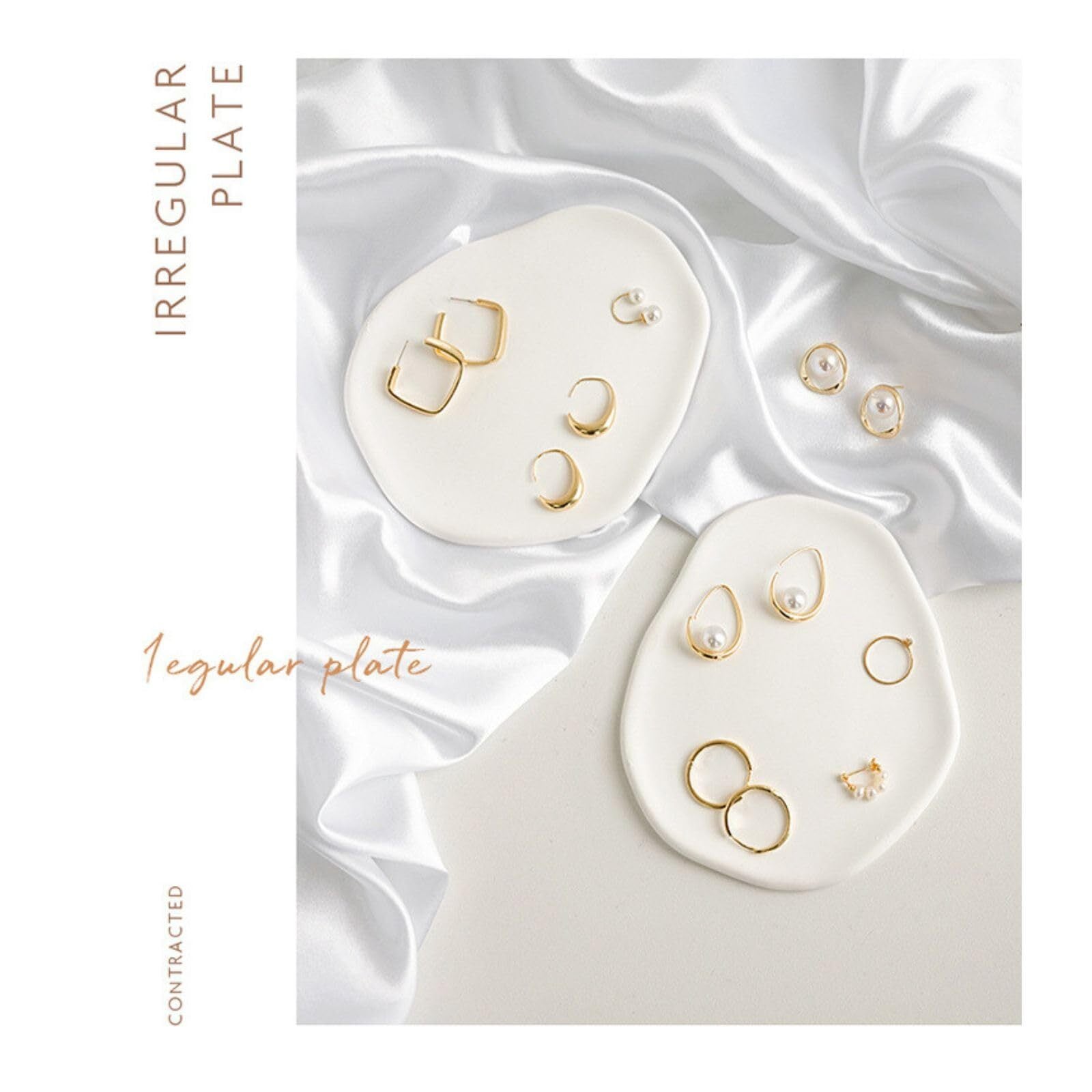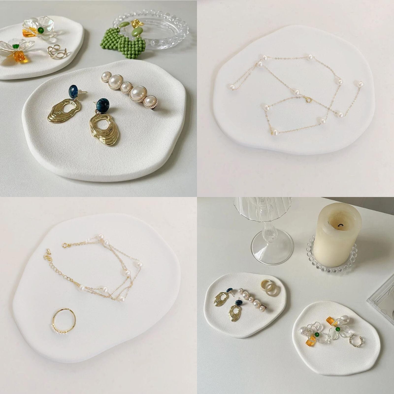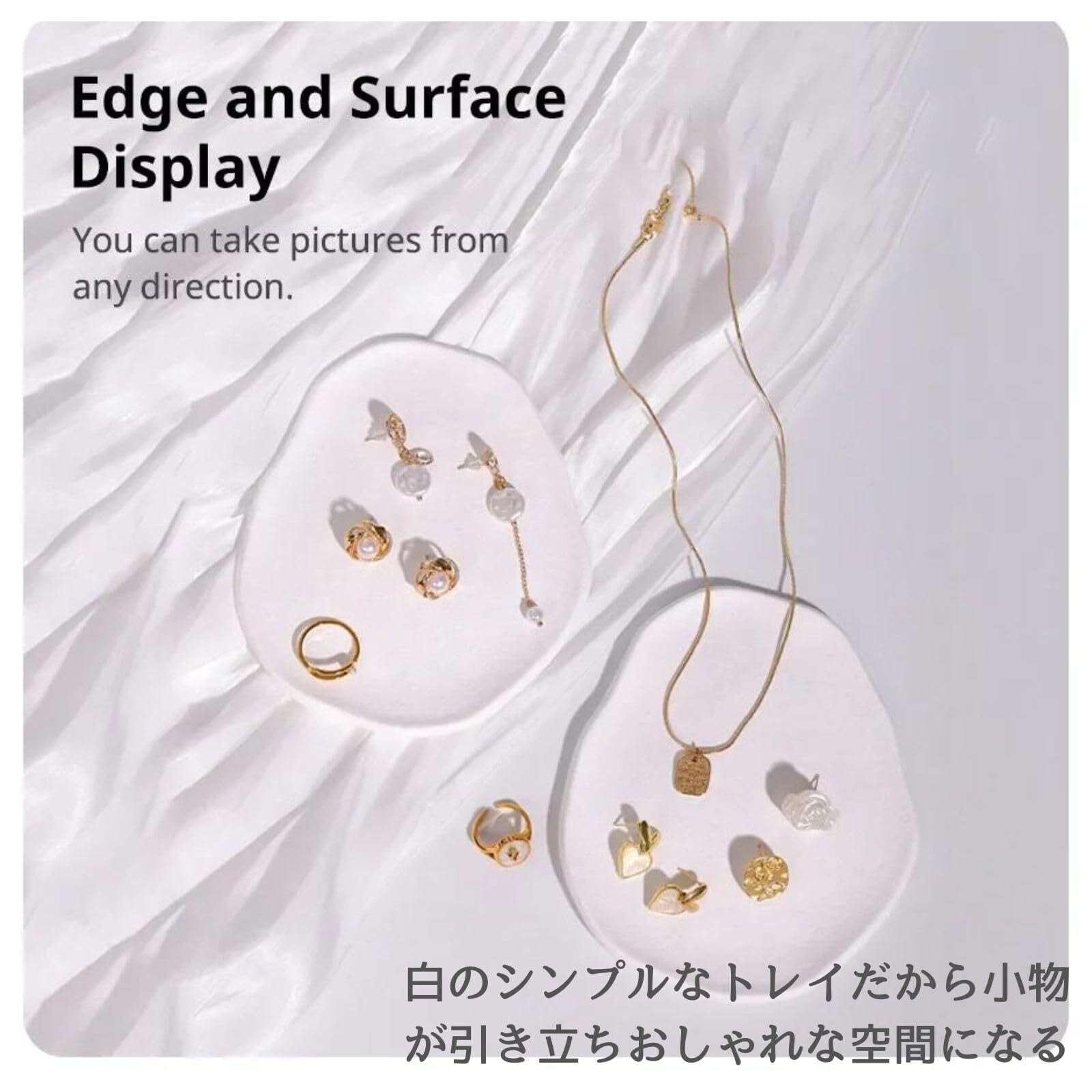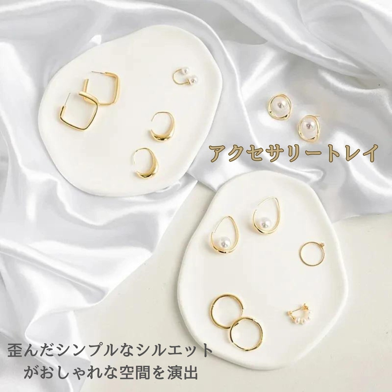 【アクセサリートレイ】アクセサリーや小物、鍵などのディスプレイや収納におすすめ!おしゃれな空間を演出するアクセサリートレーです。シンプルなホワイトなのでどんな小物も引き立ちます。商品撮影にぴったりの小物置きプレートです。おしゃれなホワイトカラーのジュエリートレイで、歪で柔らかなシルエットが特徴です。