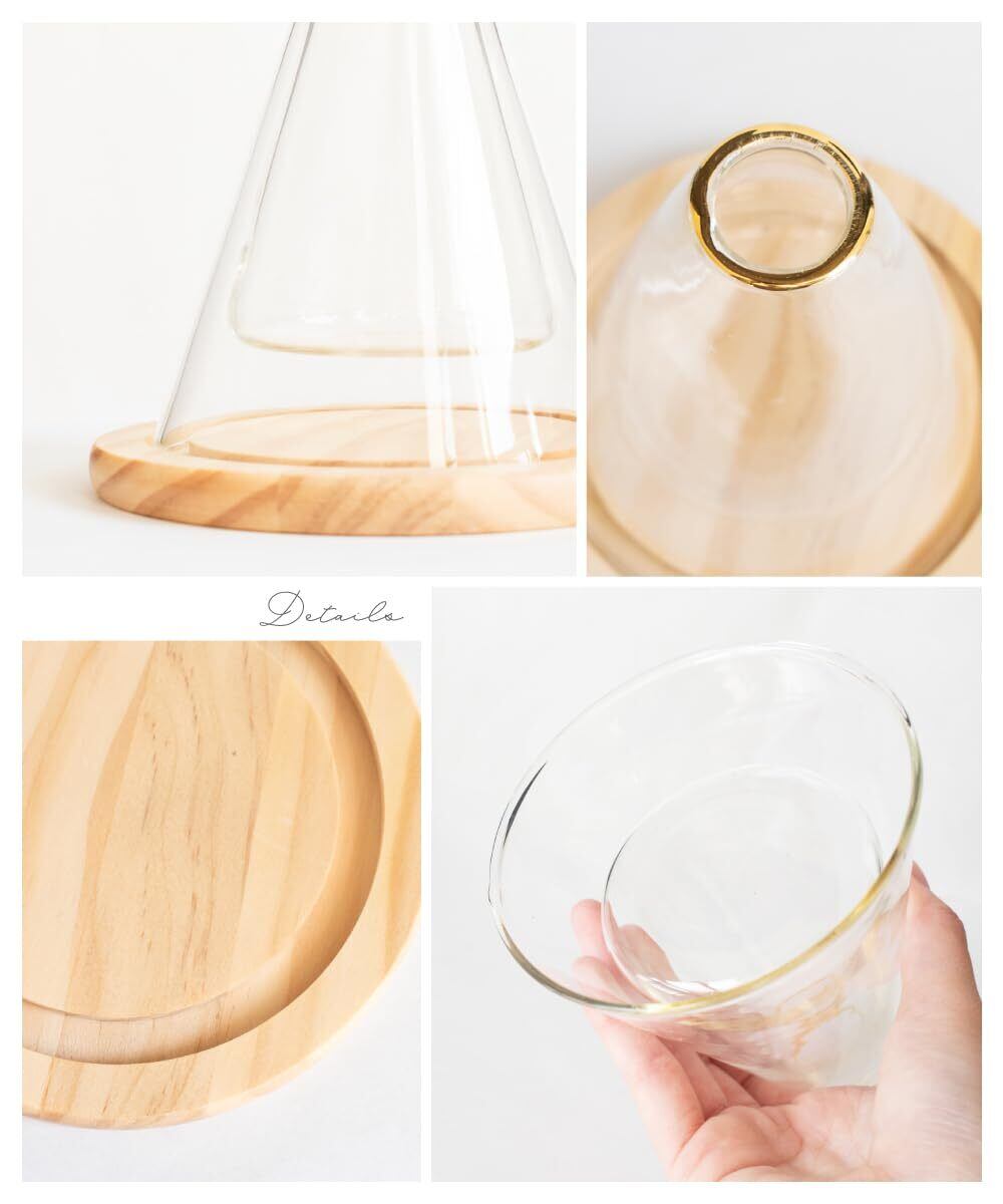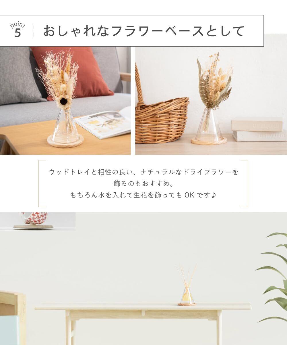 『フラワーベースとしても』ウッドトレイと相性の良い、ナチュラルなドライフラワーを飾るのもおすすめ。もちろん水を入れて生花を飾ってもOKです