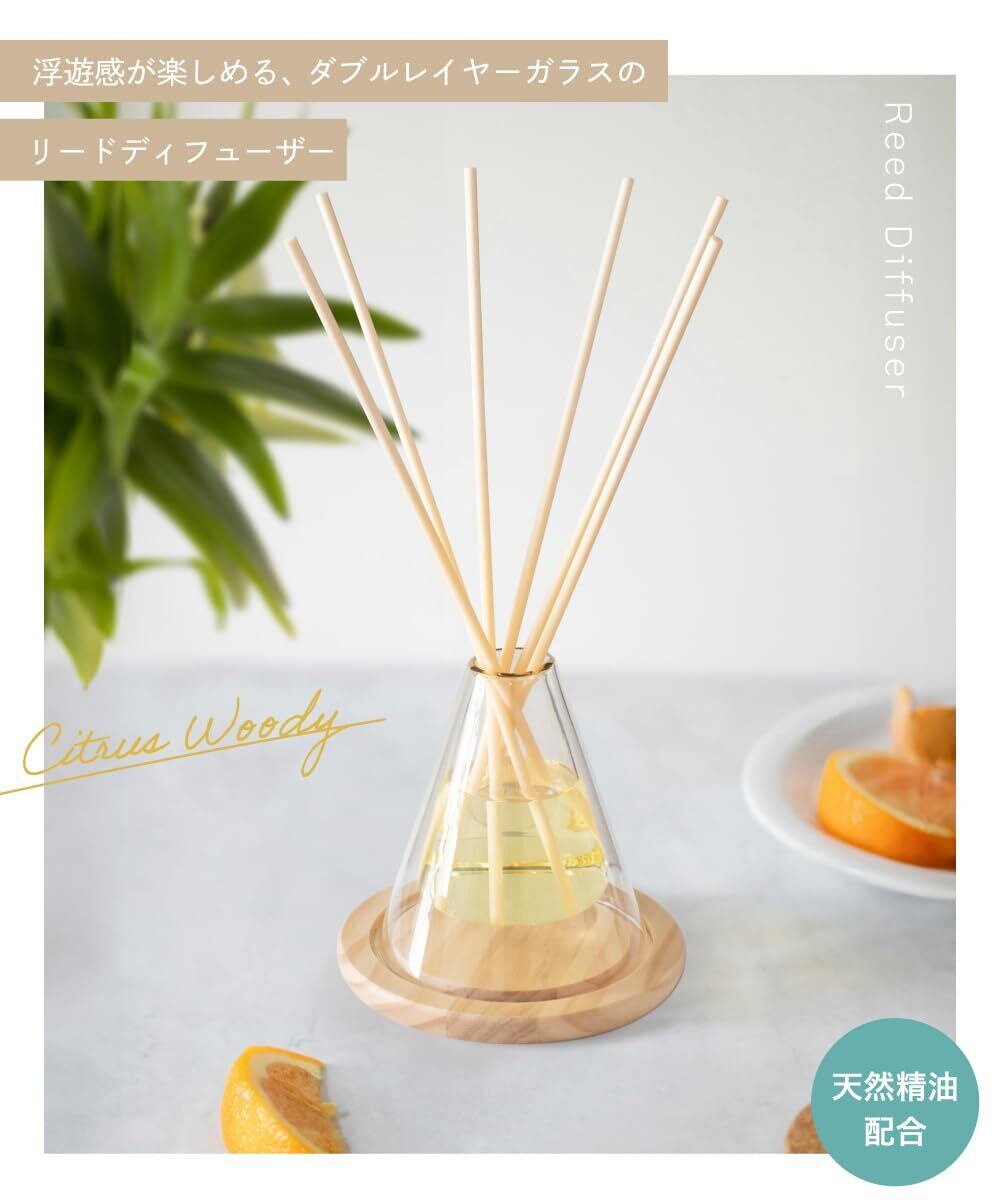 【ダブルレイヤーガラスの浮遊感が美しい】 リードディフューザー シトラスウッディ ルームフレグランス 100ml 天然精油配合 ガラス フラワーベース 花瓶 CitrusWoody