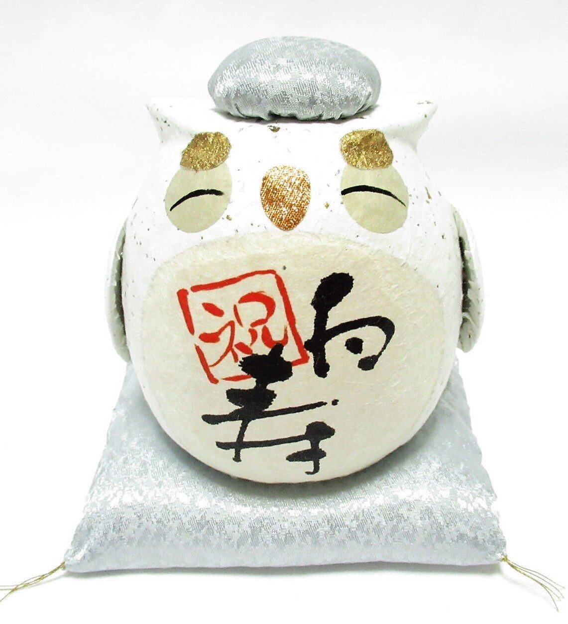 『長寿の祝いふくろう 白寿』 手作ちちぎり和紙細工 なごみの和雑貨