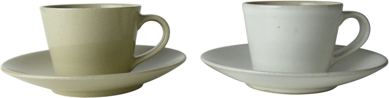 セット内容:コーヒーカップ(並白釉)(糠白釉)各1,ソーサー(並白釉)(糠白釉)各1
