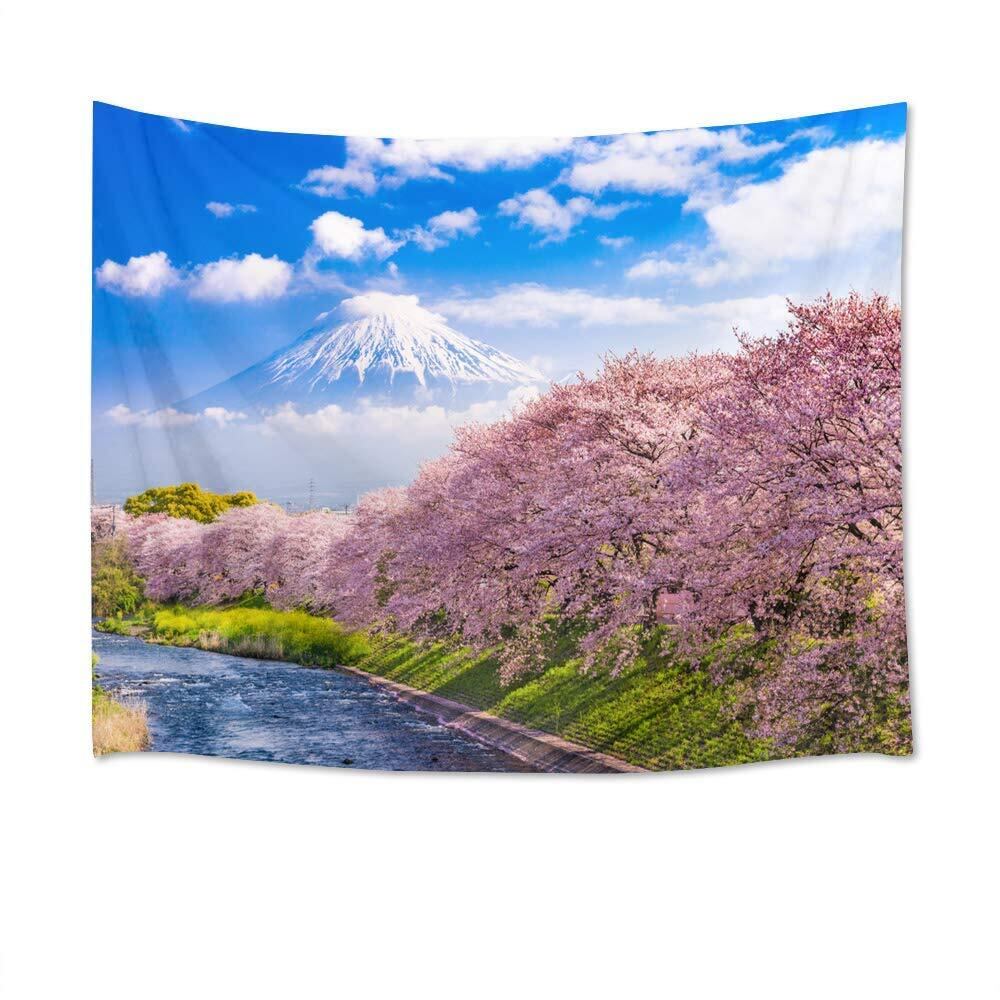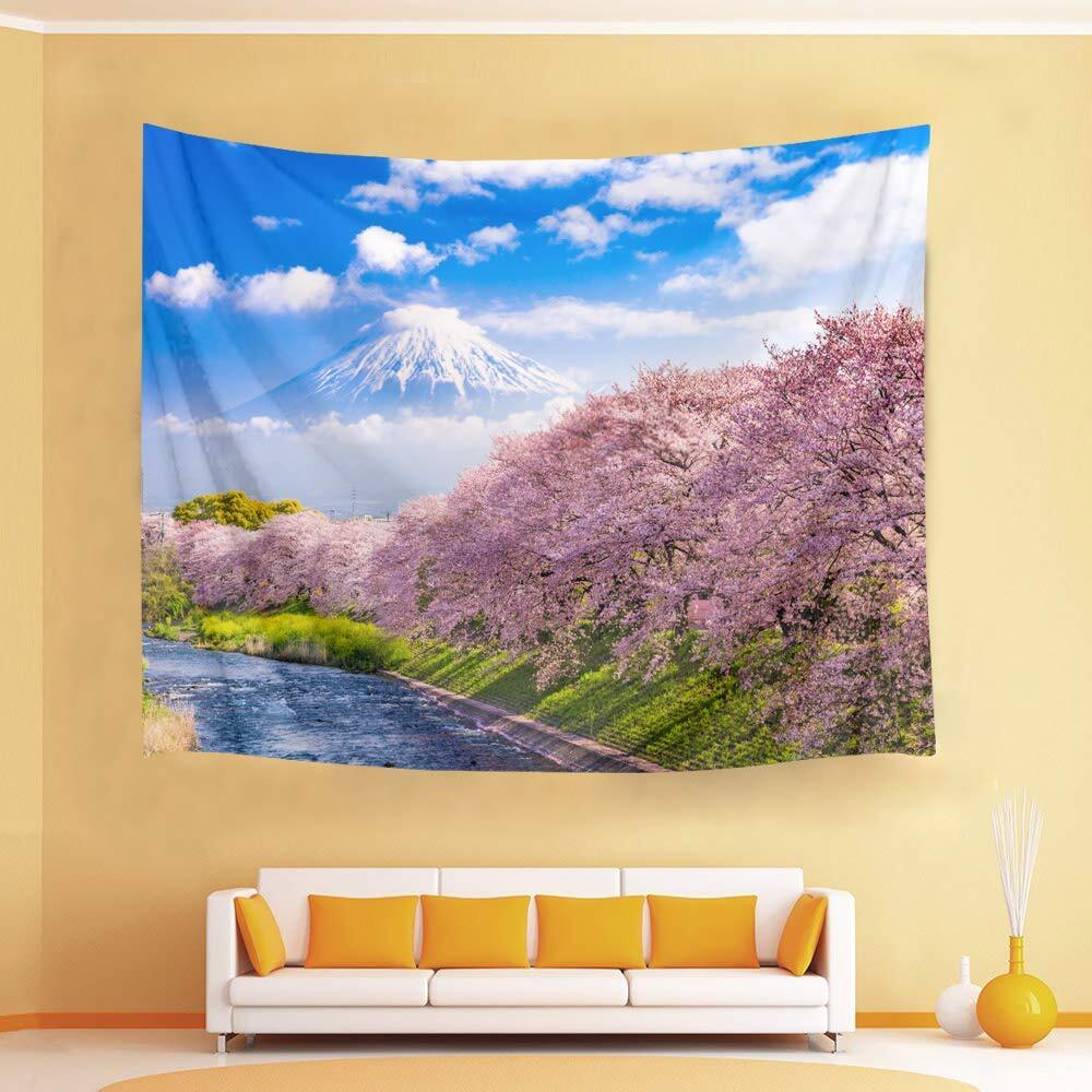 【特価商品】LB 花柄タペストリー 桜の花 富士山の風景 美しい 壁掛け 春 おしゃれ 装飾布 インテリア 部屋飾り 多機能 自宅やお店の装飾 個性ギフト 新居祝い 気分転換 (200x150cm)