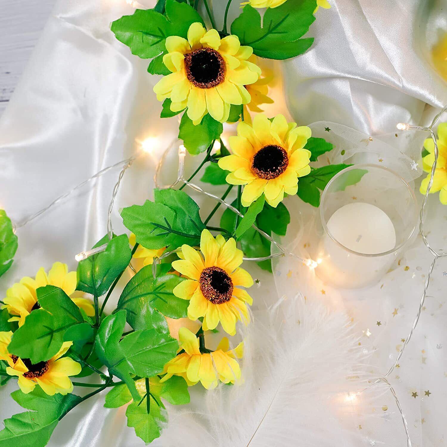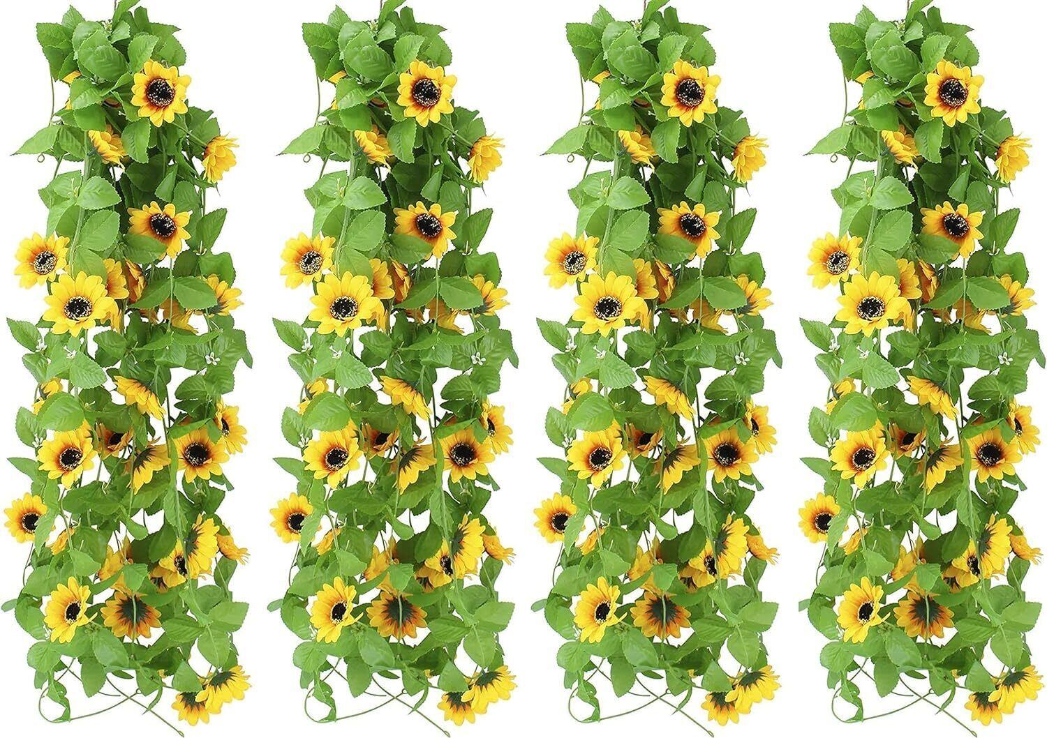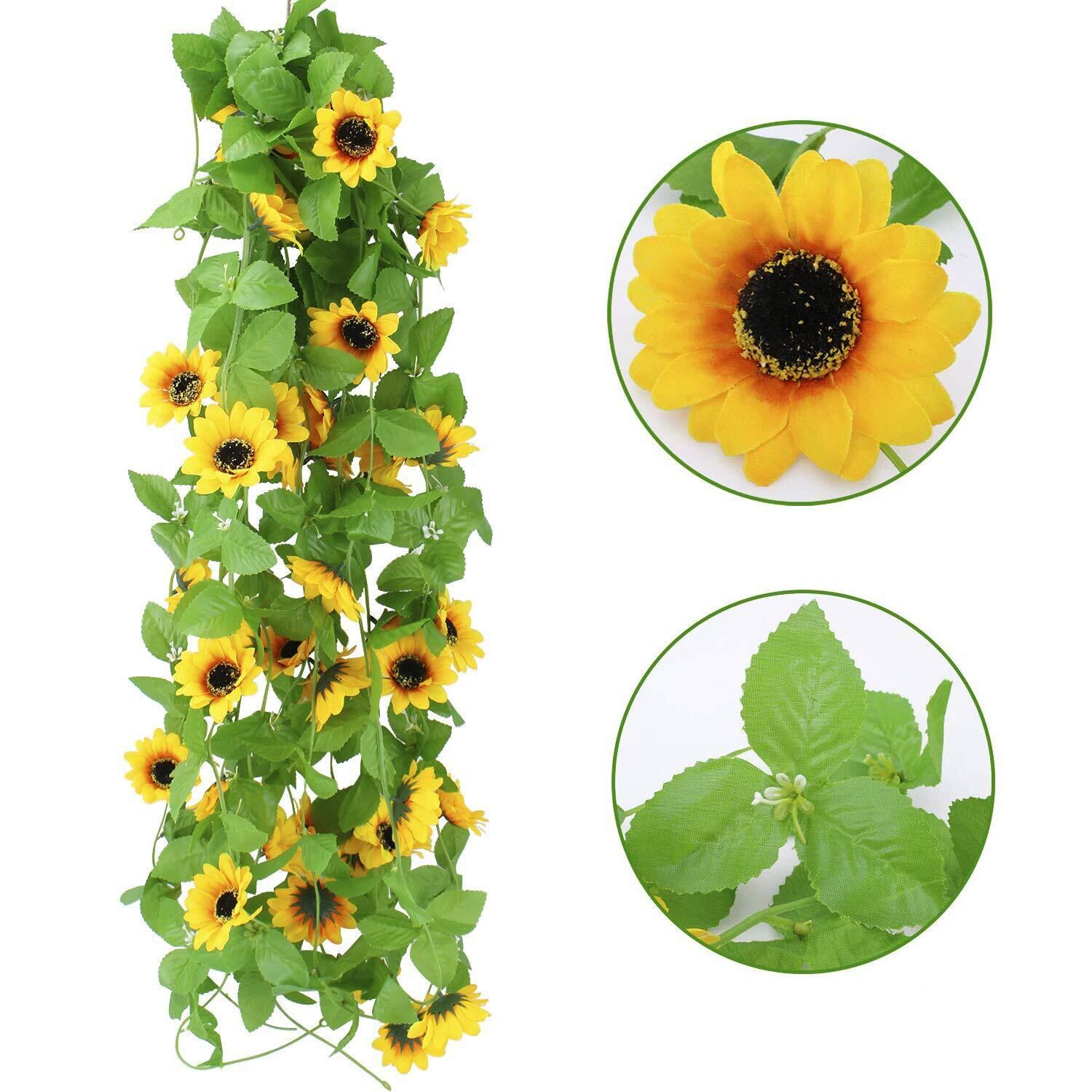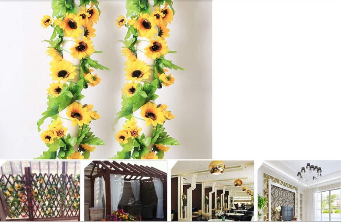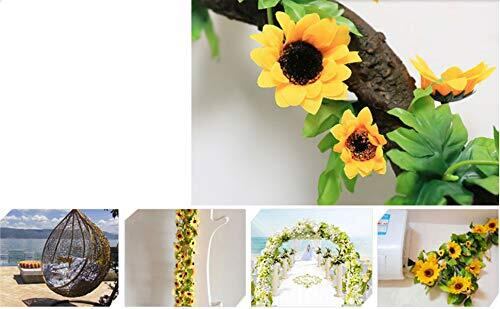 造花の藤 ひまわり 壁飾り花 枯れない花 ガーランド 向日葵 インテリア飾り 壁掛け 人工花 人工観葉植物 家庭やパーティーの装飾のための花輪を吊る 喫茶店/スーパー/茶室/自宅に適用 2.3メートル (4)