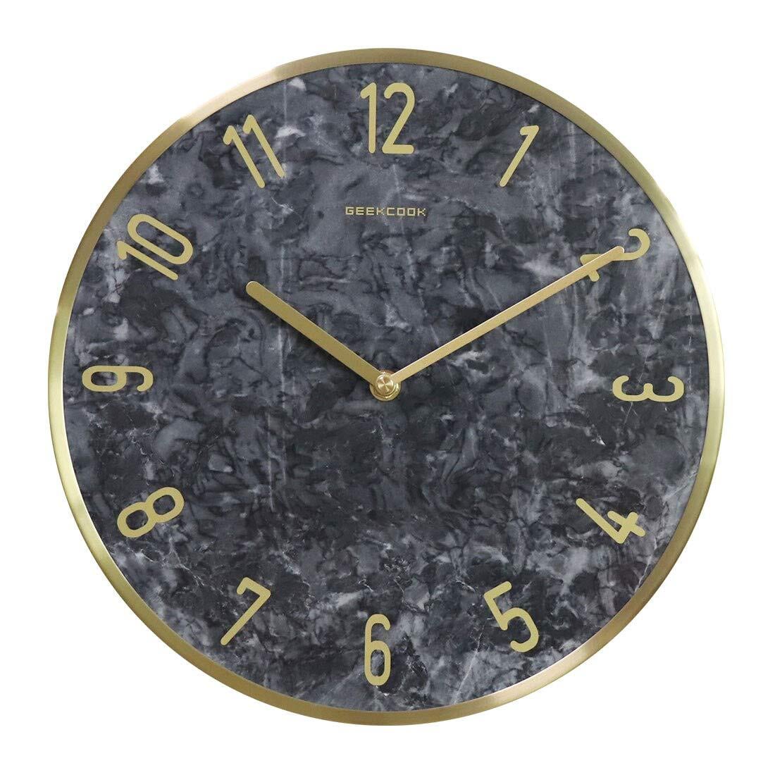 天然大理石の文字盤とゴールドフレームでラグジュアリーな雰囲気の掛け時計。