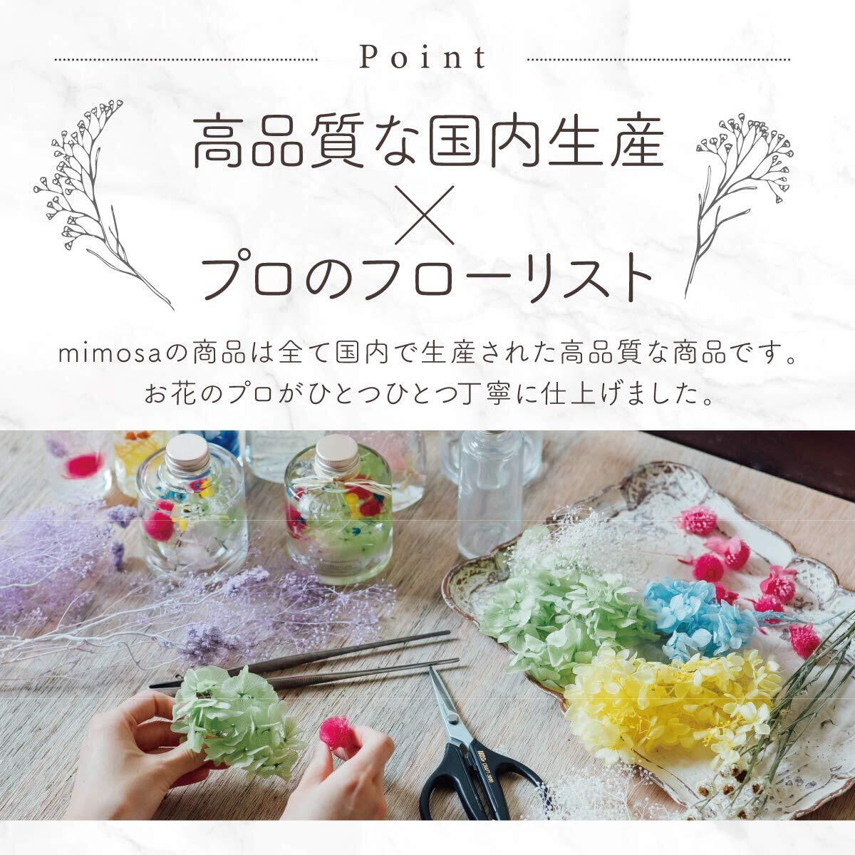 【安心の国内生産】安心の国内で生産されたドライフラワーやプリザーブドフラワーを使用しているためお手入れ不要で1年中きれいな花をご覧いただけます!