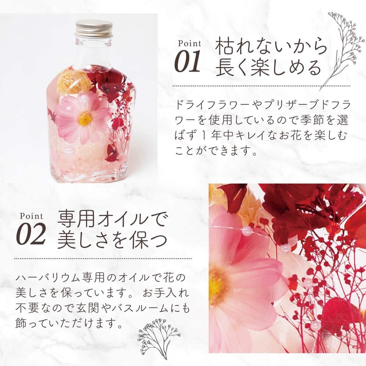 【可愛いデザイン】インスタ映え間違いなしの可愛いハーバリウムです。ウイスキーのボトル瓶入りで、お洒落に飾っていただけるので、20代/30代/40代/50代/60代と幅広い年齢の女性に大人気です!