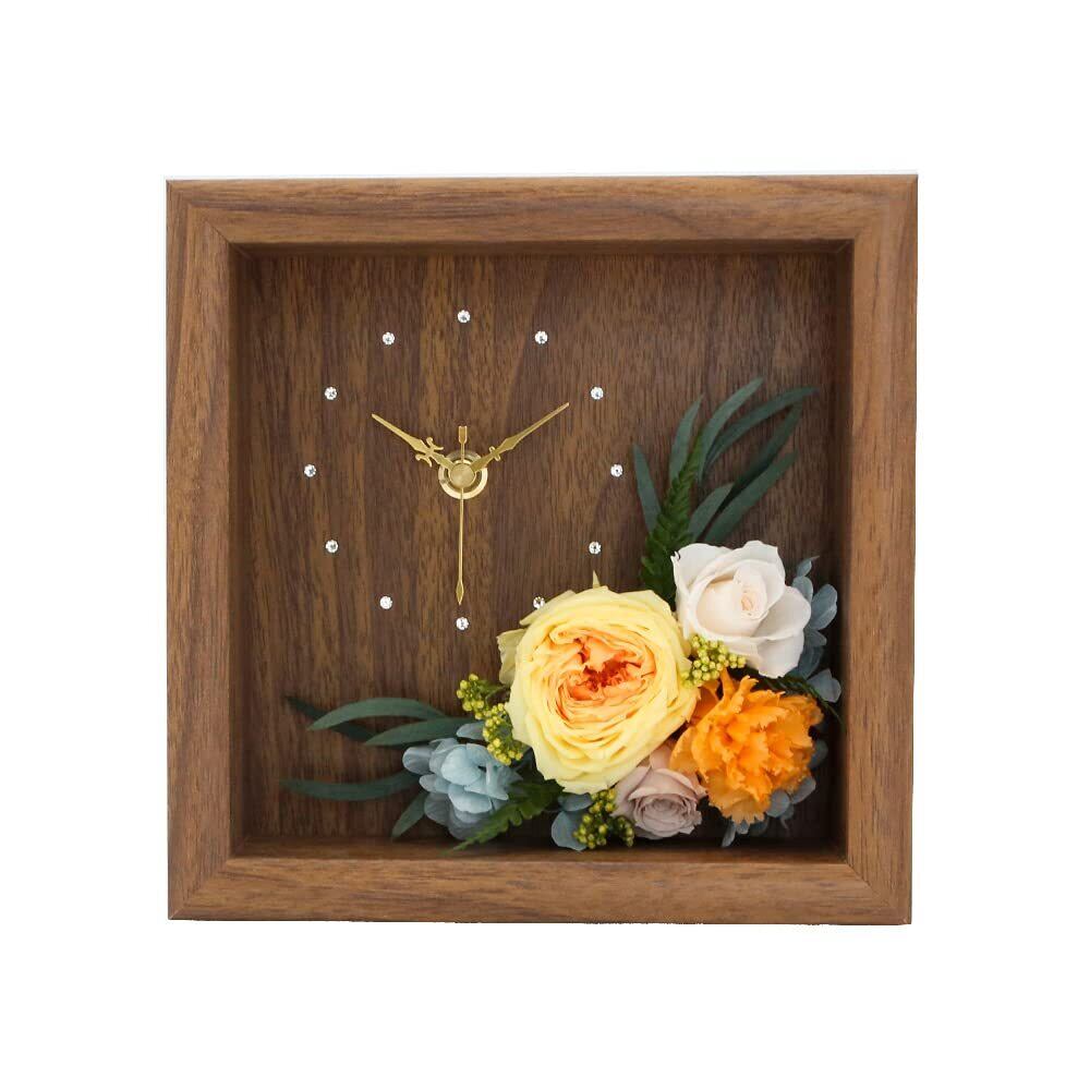 【Mahalo -マハロ- 】 プリザーブドフラワー 時計 置時計 ハワイ 雑貨 ハワイアンインテリア ギフト プレゼント リゾート 木製 バンブー (ブラウン×オレンジ)