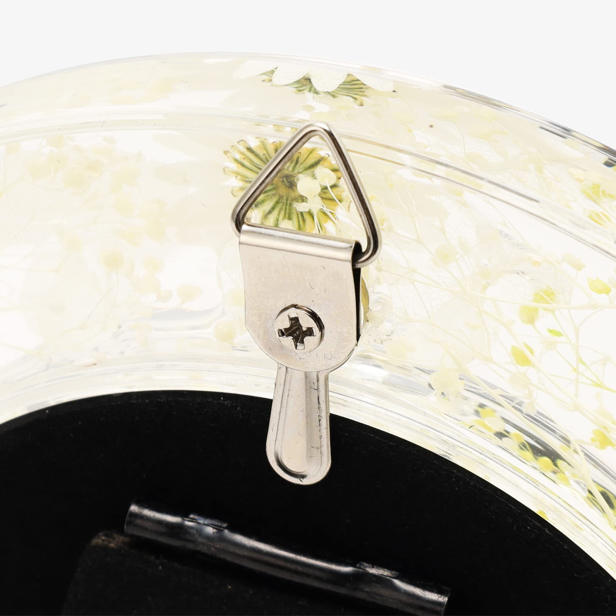 商品注意事項:この製品は、天然素材を使用しているため大きさや色、形などに個体差があります。<br>ハンドメイドで花材を配置し樹脂を流し込んでいるため、気泡が入ったり配置や色など製品ひとつひとつに個体差があります。<br>経年変化により花材の色素が薄まったり、樹脂部分の黄変が生じる場合があります。素材の特性上避けられませんのでご了承くださいませ。<br>壁にかけてご使用になる際には、必ず壁面の材質や構造をご確認の上、本体の重量にあった市販の掛け具(フック等)をご使用ください。<br>予期せぬことで、フレームが落下する場合が考えられます。脱落防止のためにも、お子様やペット、物が触れやすい所は避け、下に大切なものを置かないよう注意してください。