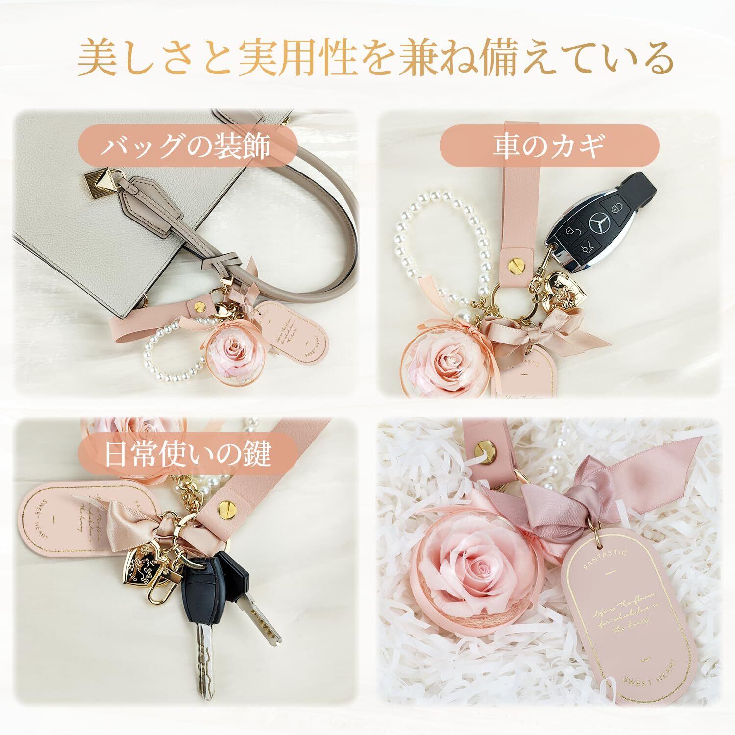 【プリザーブドフラワー 人気ギフトランキング】枯れないバラ花言葉:「熱烈で真の愛・勇敢な慕情・心からの感謝」20代、30代、40代、50代、60代の女性に人気のギフト。母の日のプレゼント人気、新年人気のプレゼント、記念日、クリスマスプレゼント、新年の贈り物、バレンタインデー、ホワイトデー、プロポーズ、残暑見舞い 、お盆、敬老の日、告白、結婚式、入学式、卒業式、誕生日、母の日、引越し祝い 、クリスマス、退職祝い などに素敵でロマンチックな贈り物として、バッグチャーム、女性は美しいバラを断ることができません。