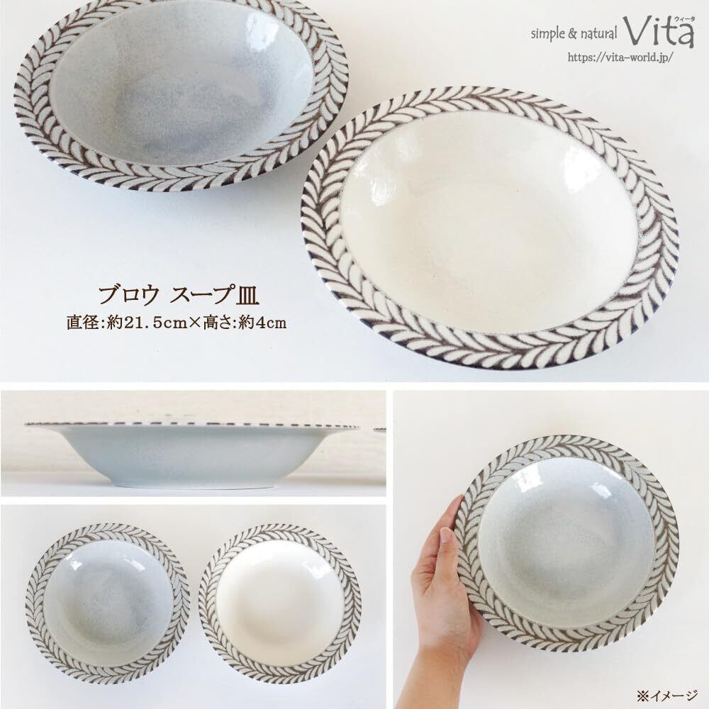 【セット内容】 ●ブロウ ミート皿 ×2枚(直径 約24cm × 高さ 約2.7cm) ●ブロウ スープ皿 ×2枚(直径 約21.5cm×高さ 約4cm) ●スプーン×2本(長さ約20.6cm × 幅 約4.1cm) ●フォーク×2本(長さ約21cm × 幅 約2.3cm)●キッチンクロス×1枚(長辺 約53cm × 短辺 約32cm)●Vitaオリジナルブーケ ×1束 ●ポストカード×1枚 計11点が入った、そのままお渡しできる「ラッピング付き」食器ペアセット!