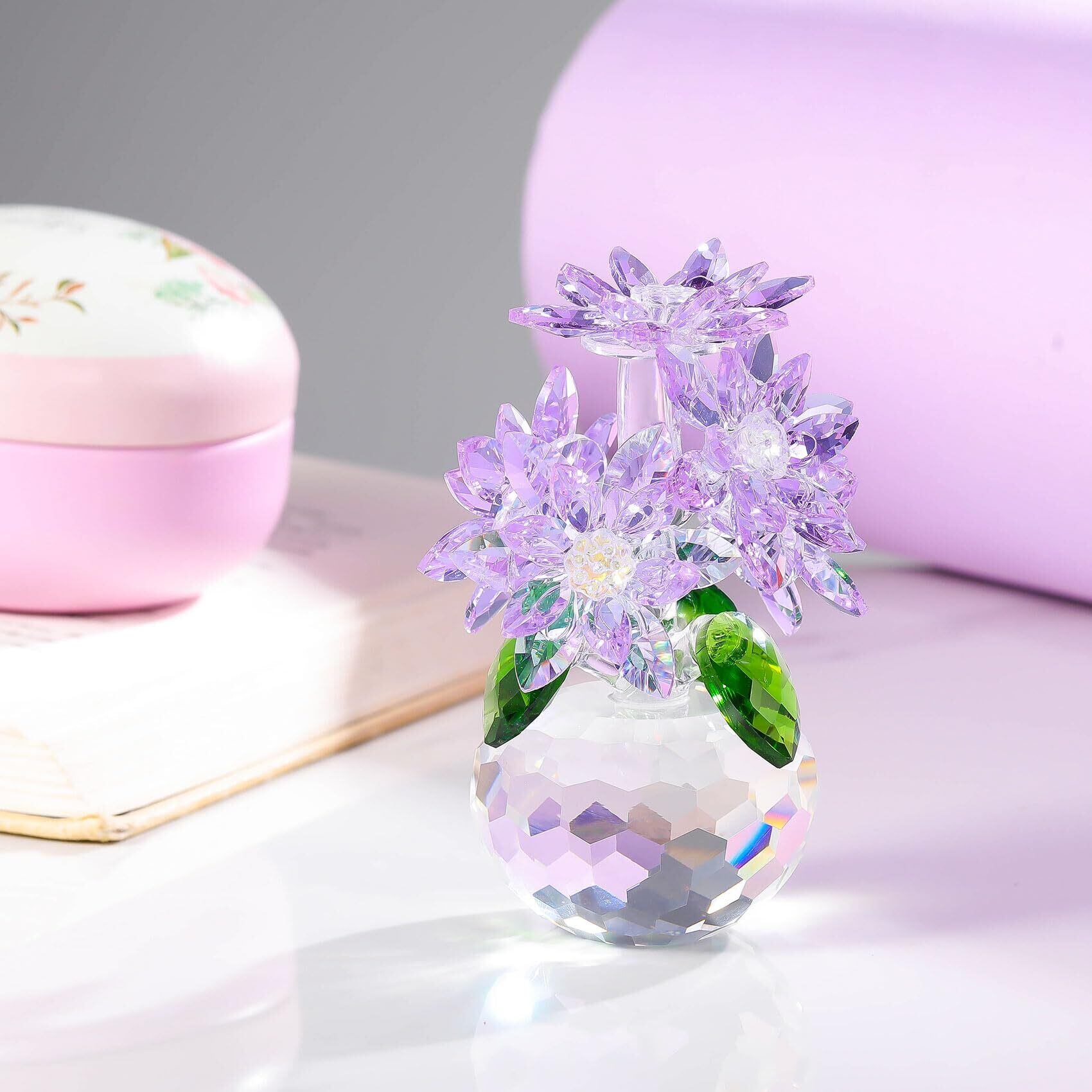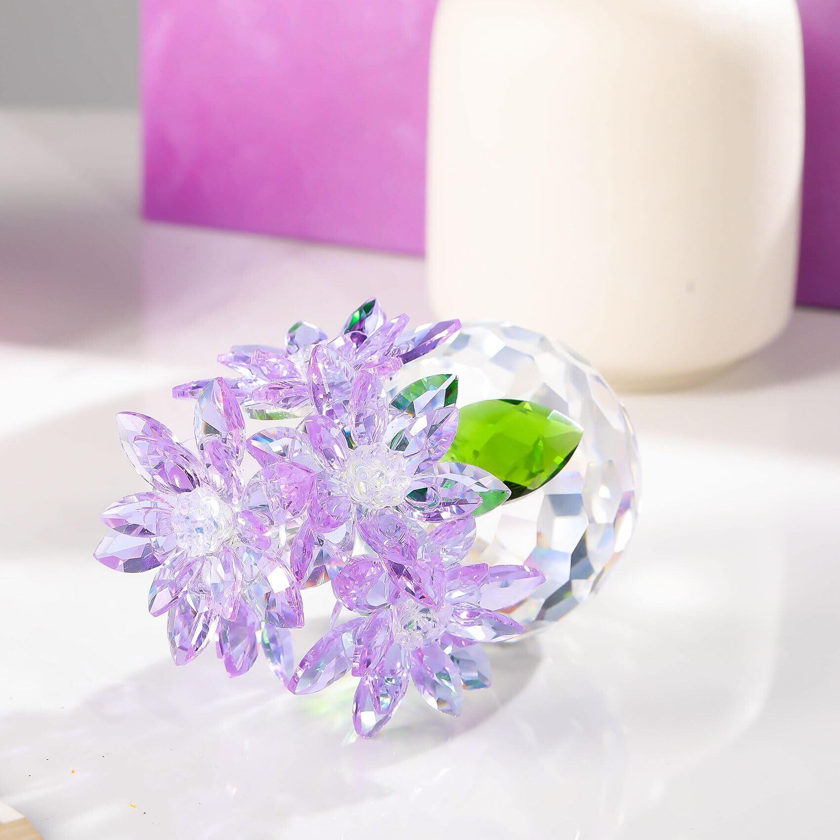 【バースデーギフト 女性に人気】パープルのクリスタルフラワー。女性へのギフトとして特別な選択肢です。誕生日プレゼント、卒業祝い、還暦のお祝い、退職祝い、敬老の日の贈り物、結婚祝い、結婚記念日のプレゼント、クリスマス、バレンタインデーの贈り物。母の日や結婚式などにも。