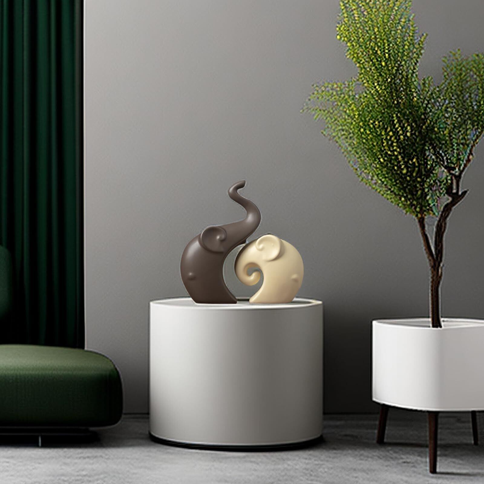 RemeeHi インテリア 北欧風 陶器 うさぎの置物 かわいいウサギ 雑貨 結婚祝い 引越し祝い ウサギのメモリアルギフト (ゾウのカップル), B-008