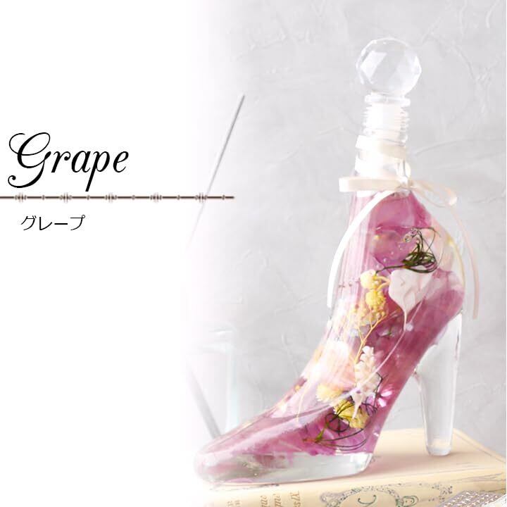 [My Treat] ハーバリウム プリザーブドフラワー シュエット ガラスの靴 母の日 誕生日 結婚記念日 御祝 プレゼント (グレープ)