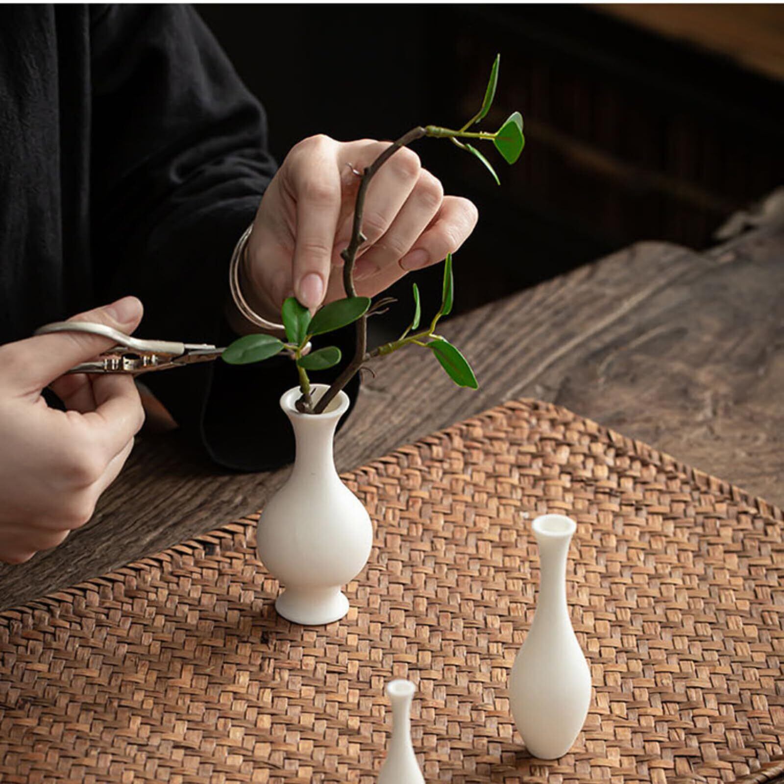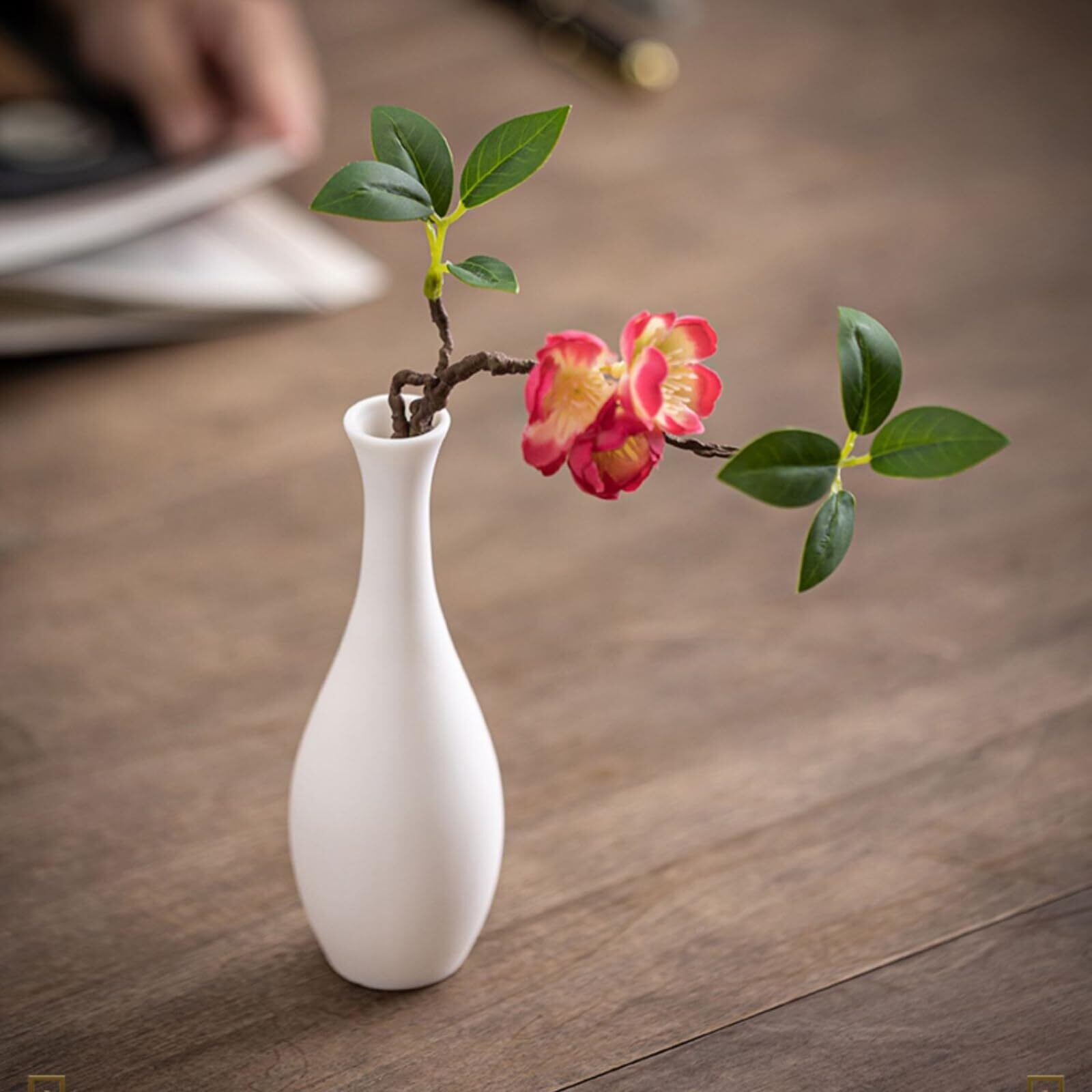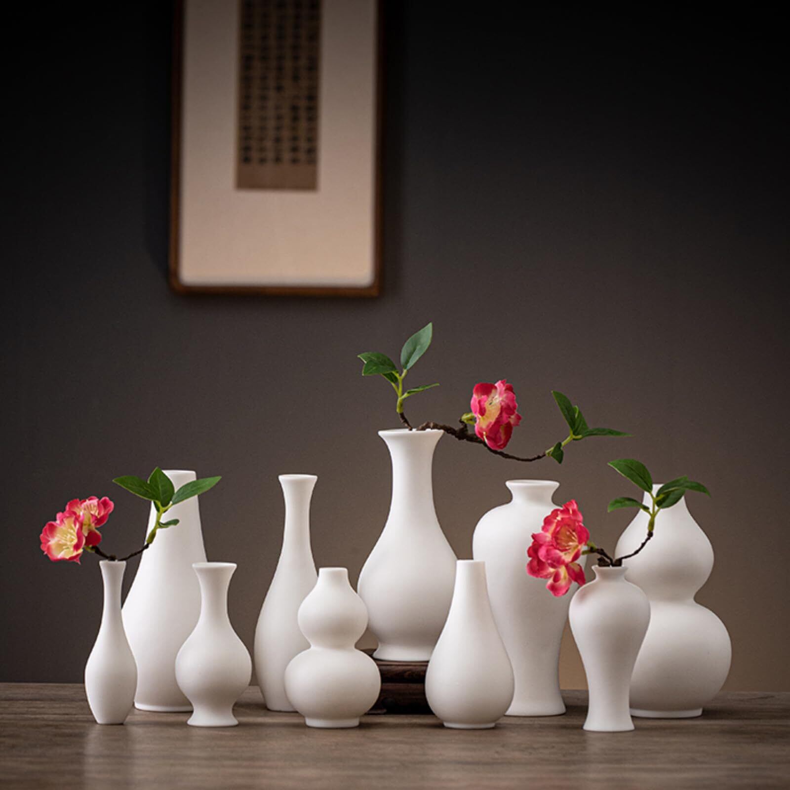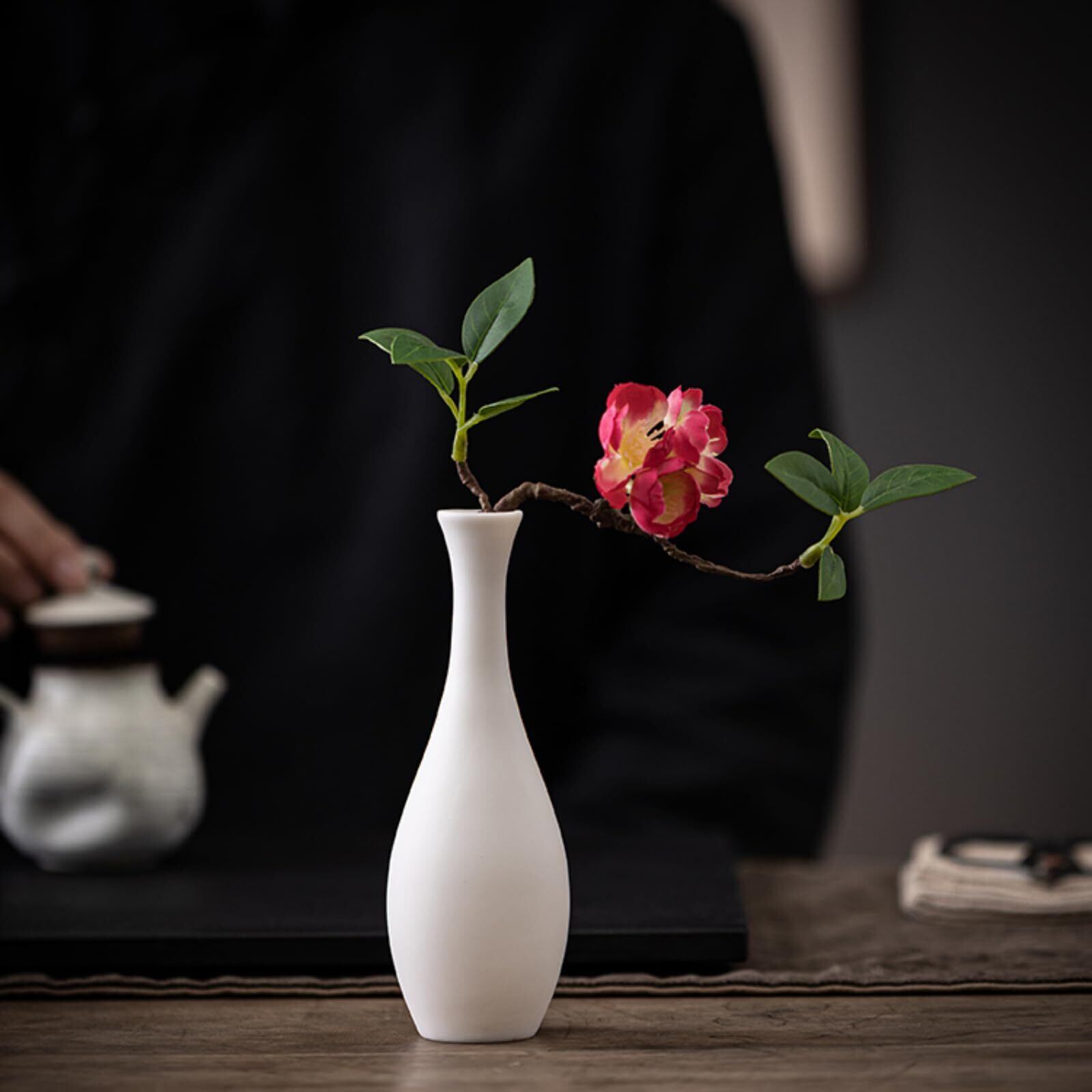 【数量限定】花瓶 ミニ花器 陶器 花器 一輪挿し セラミック花瓶 小さい 花瓶 生け花 造花 おしゃれ シンプル インテリア雑貨 飾り瓶 北欧 結婚式 家の装飾 かわいい ミニ花器 (白, 3.2x3.2x10.3cm)