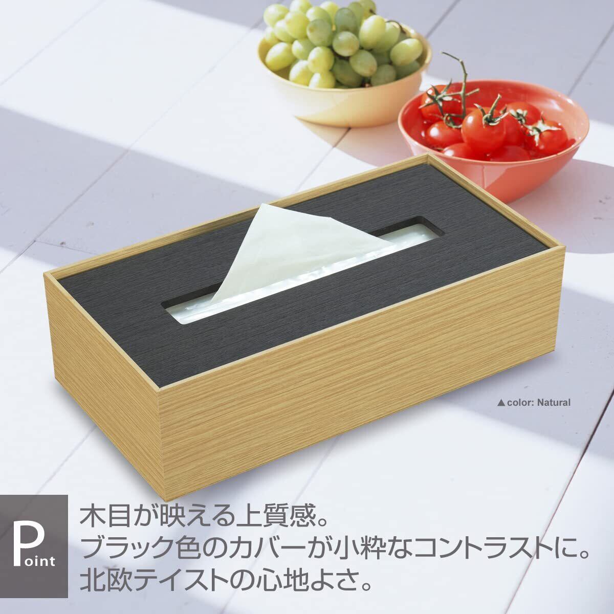 シンプルスクエア×モダンウッド。コーディネートで選ぶティッシュケース。●木目が映える上質感。ブラック色のカバーが小粋なコントラストに。北欧テイストの心地よさ。 木の心地よさが伝わる、すべてが木合板製のティッシュケースです。合板とは思えない美しい木質感。シンプルで端正なデザインは、どこに置いても絵になる存在。お部屋にウッディなアクセントを添える感覚でお使い頂けます。