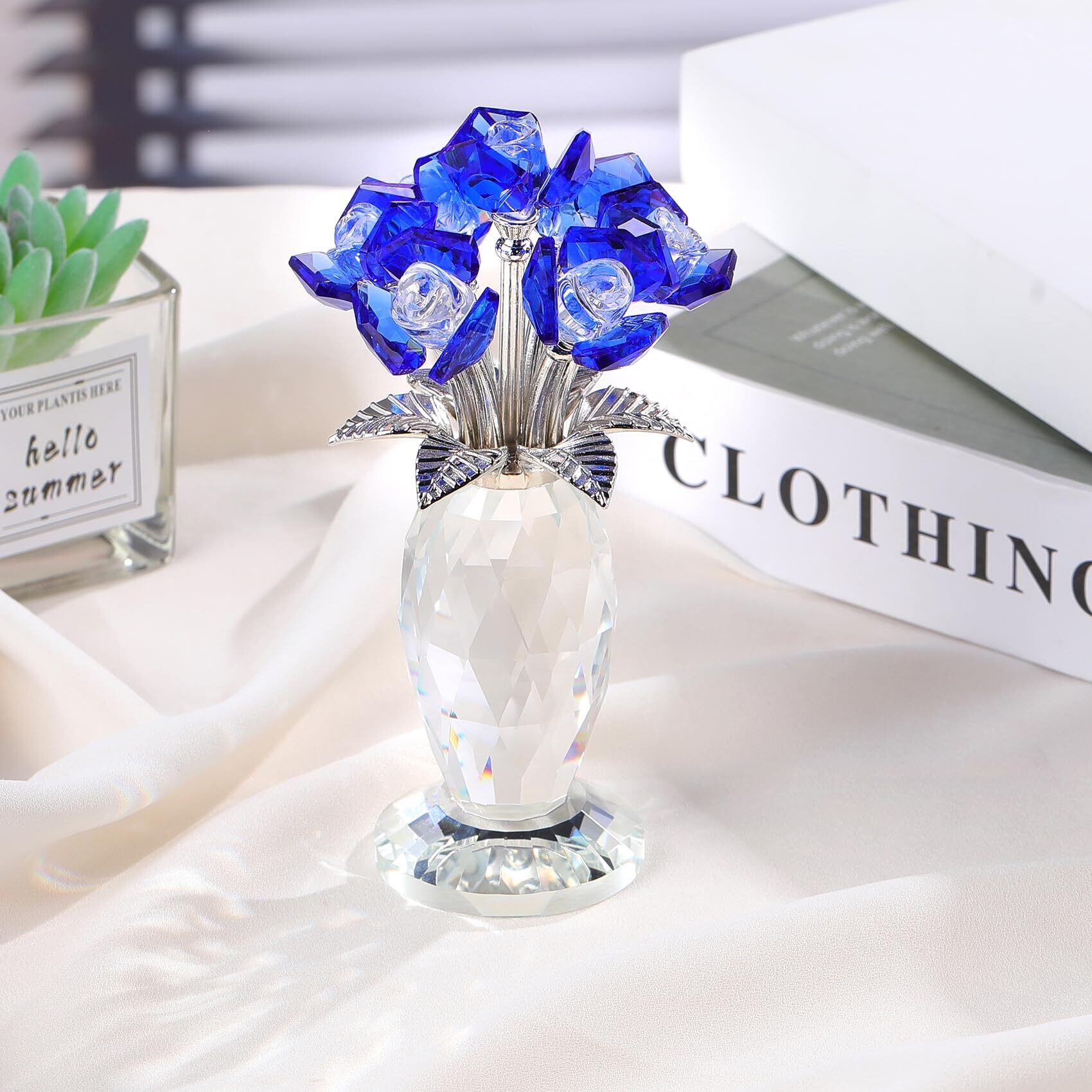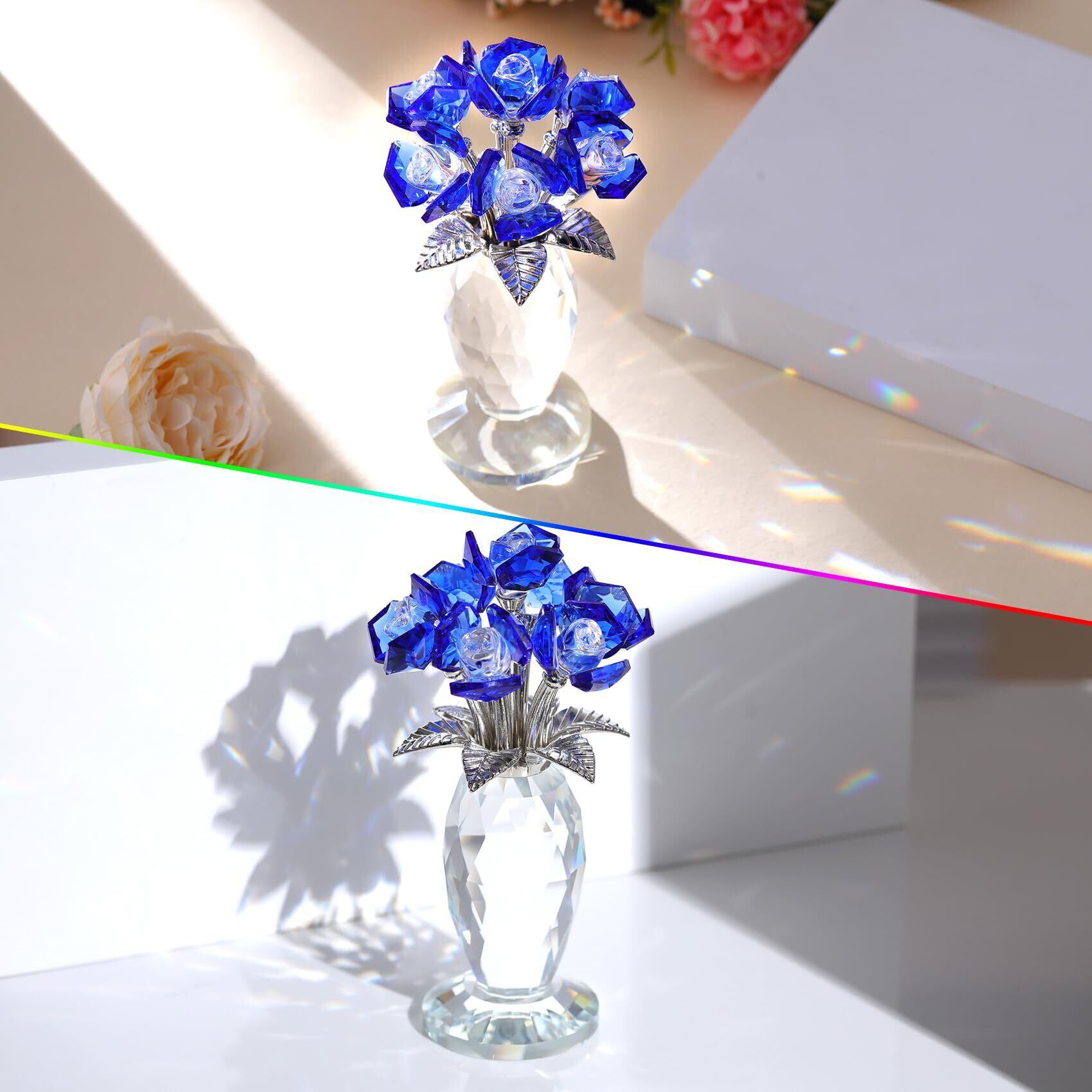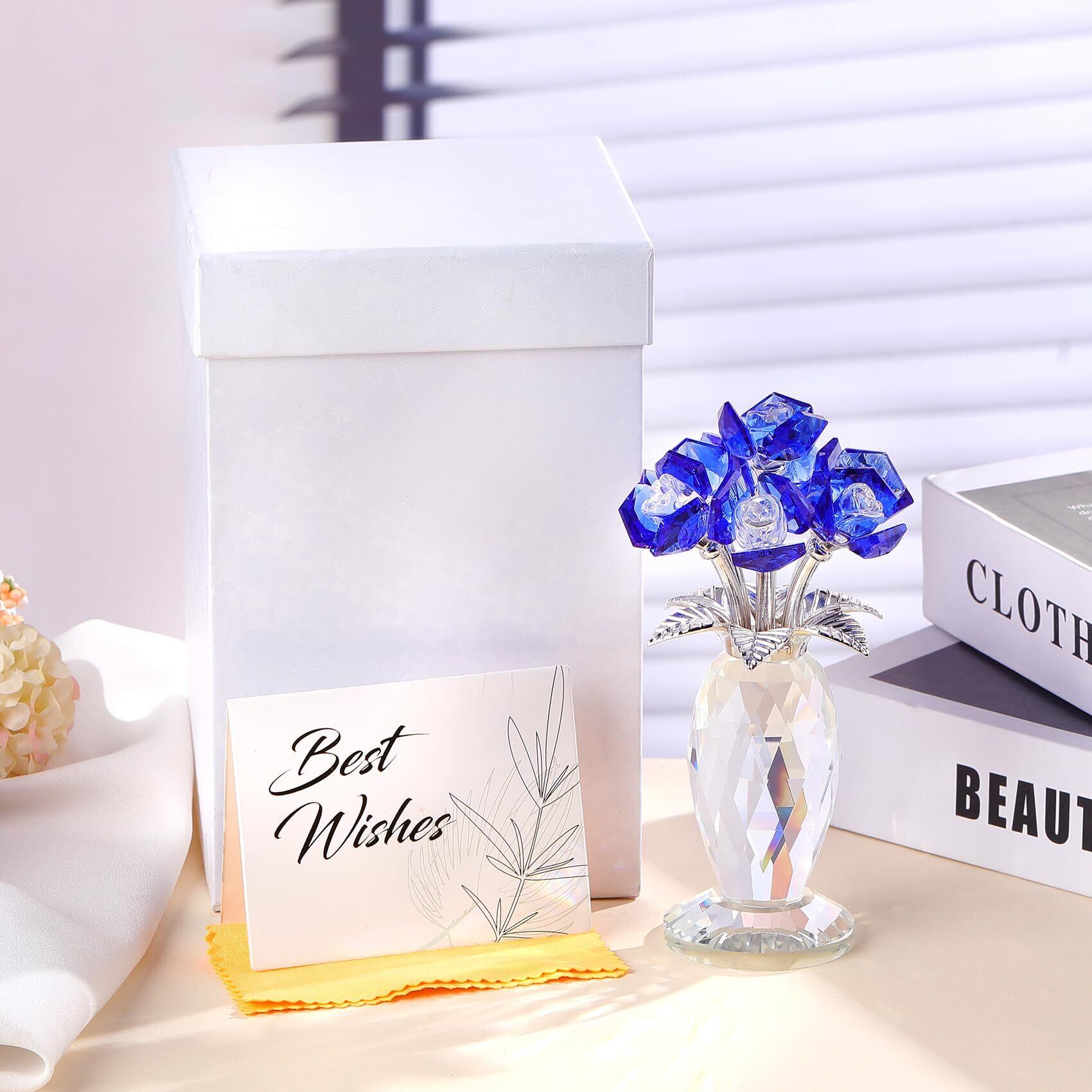 ブルークリスタルローズギフトガラス薔薇置物 結婚 女性への誕生日プレゼントに人気 枯れないバラの花束 誕生日プレゼント 結婚祝い バレンタインデー 母の日 彼女 妻 母への贈り物