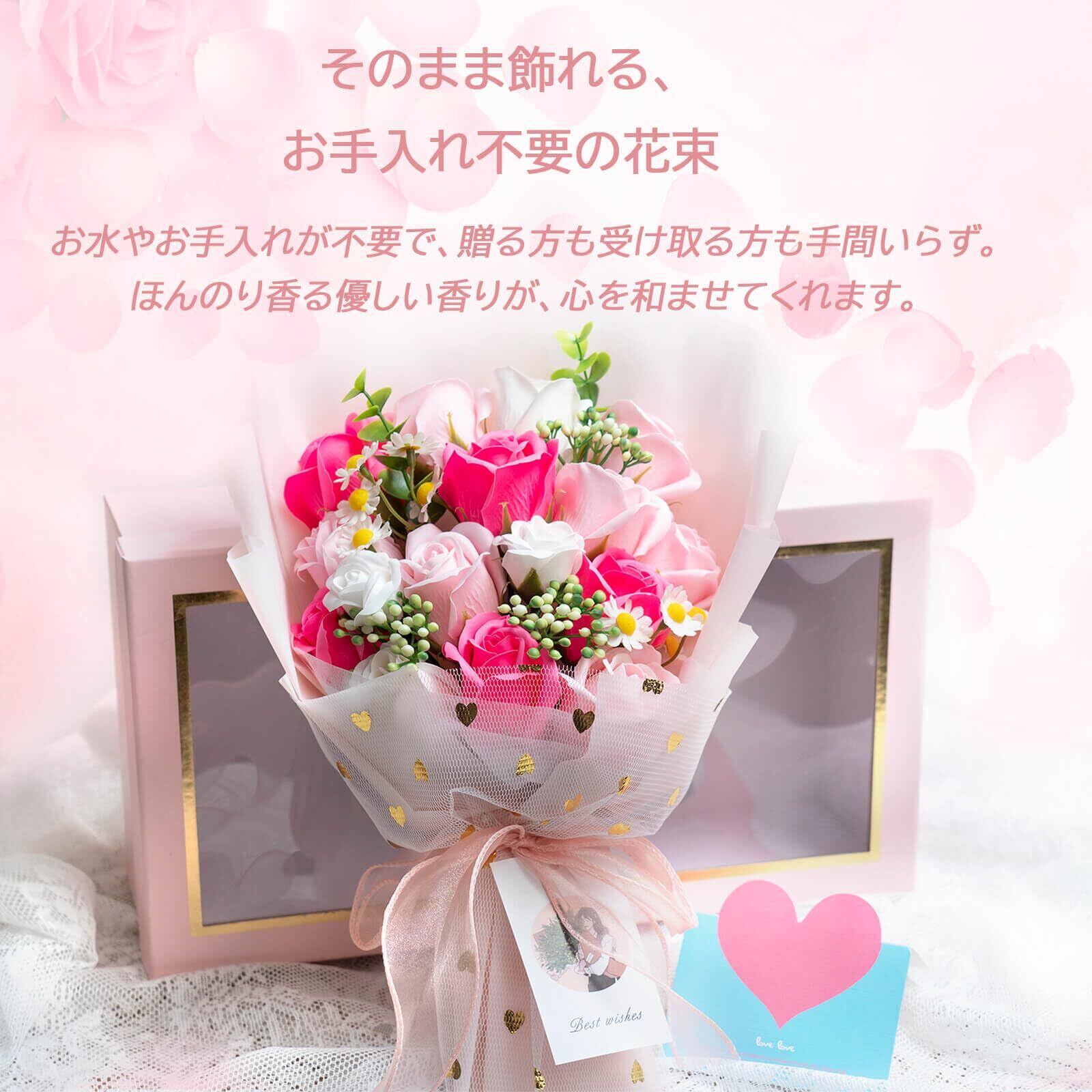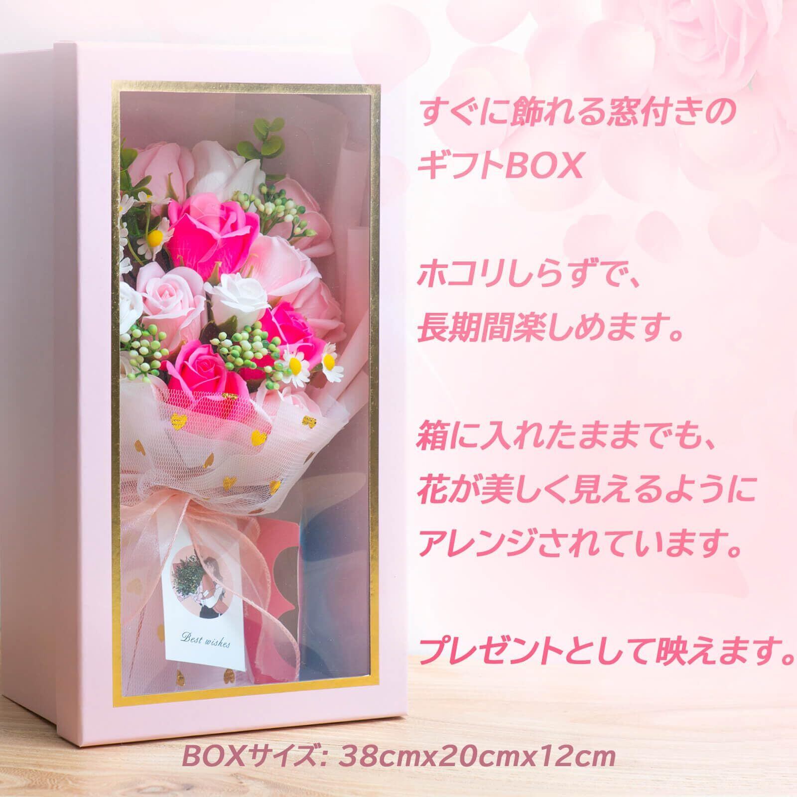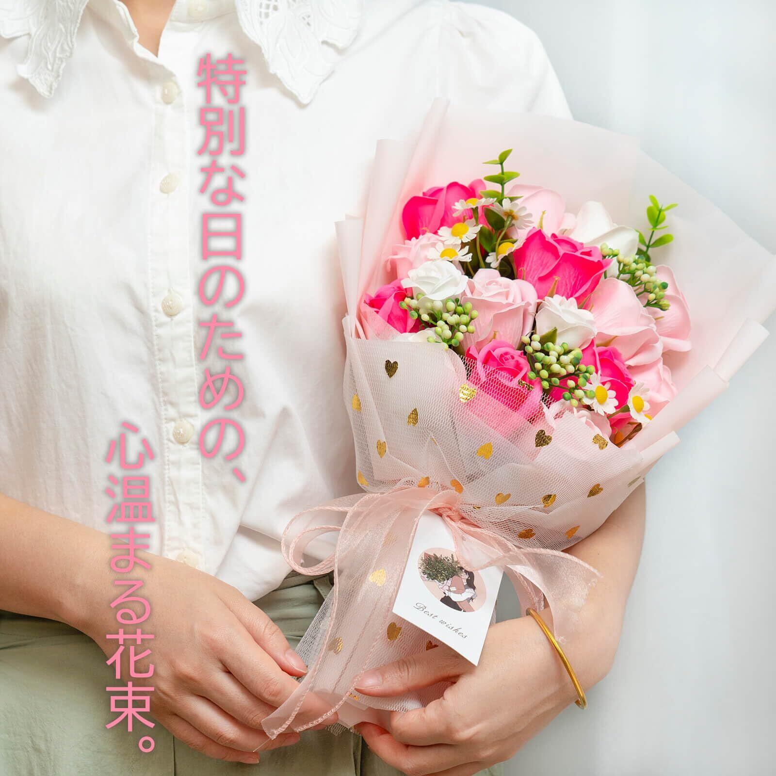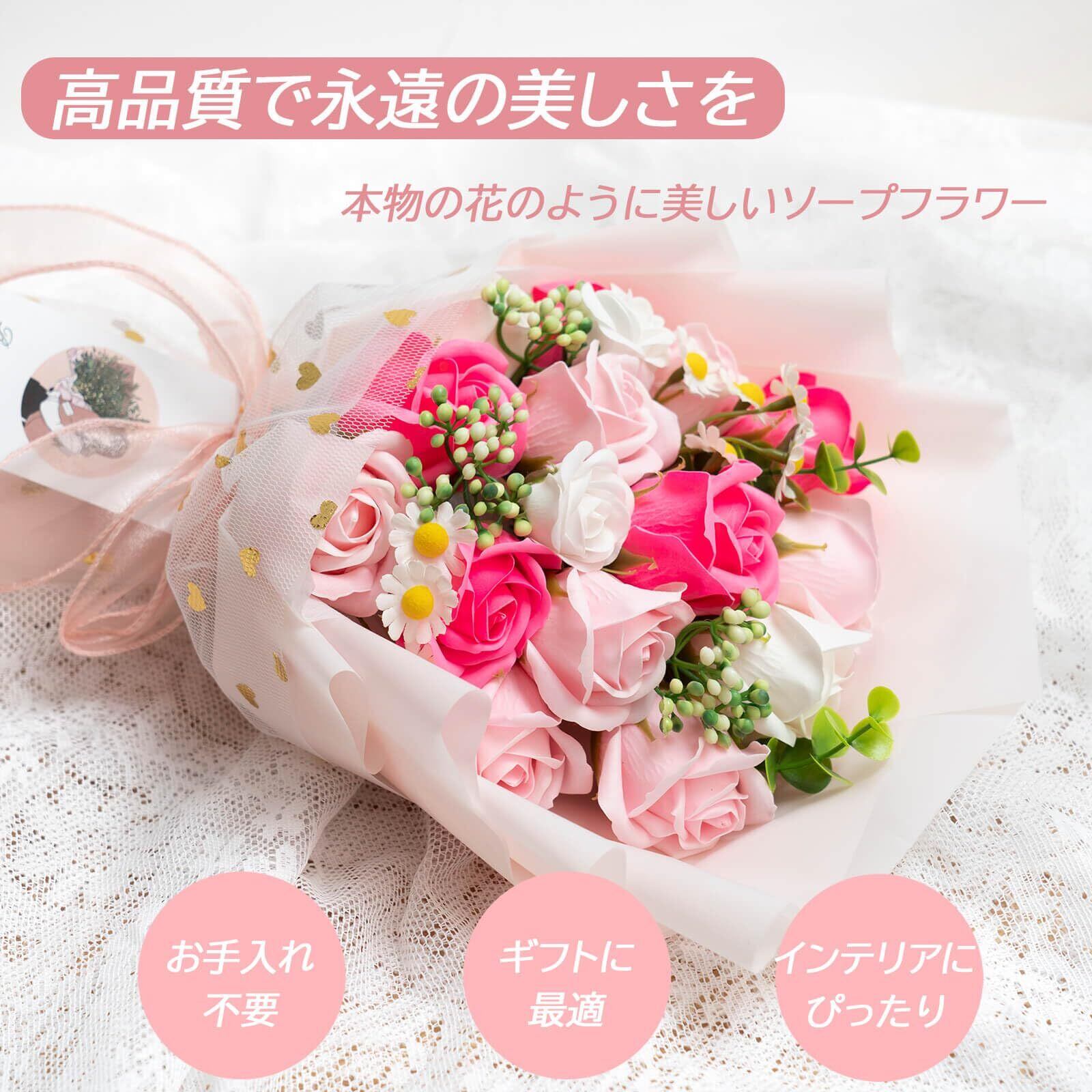 ソープフラワー ギフト 造花 花束 プレゼント 石鹸の花 シャボンフラワー インテリア 雑貨 卒業式 開店祝い 母の日 誕生日 結婚祝い 退職祝い 還暦祝い 発表会 ディスプレイ 花 フラワー ローズ 薔薇の花 アレンジ 枯れない そのまま飾れる ピンク