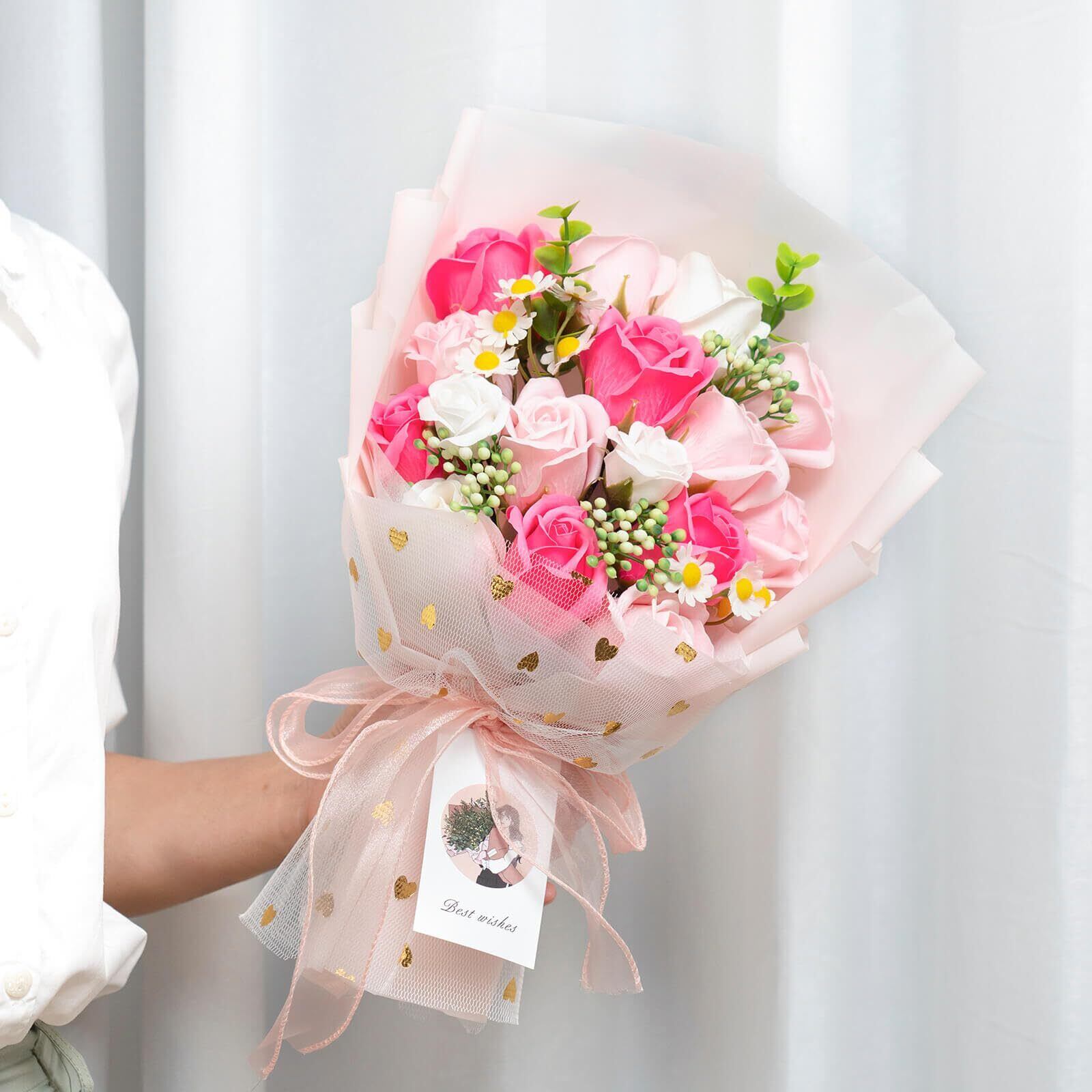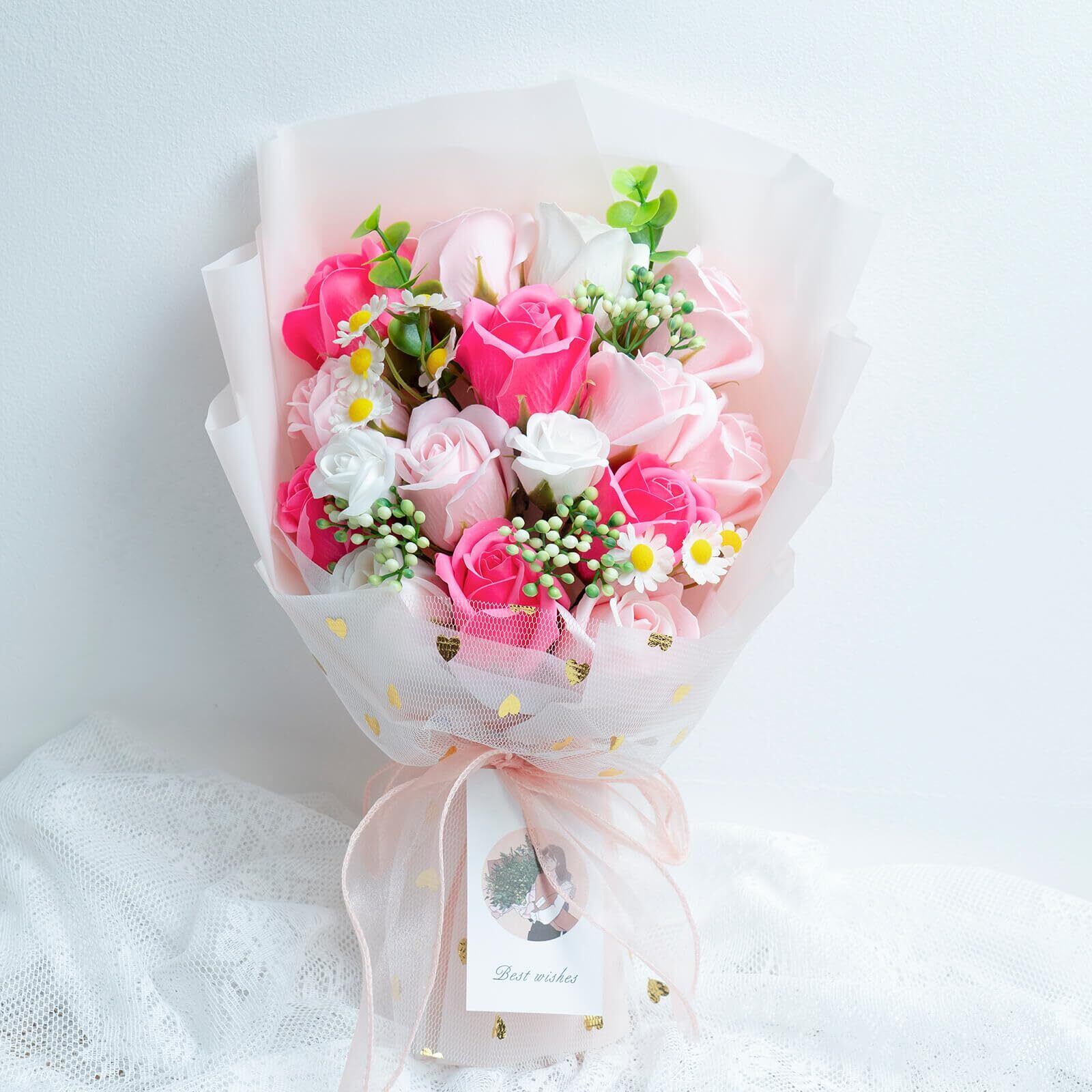 【数量限定】ソープフラワー ギフト 造花 花束 プレゼント 石鹸の花 シャボンフラワー インテリア 雑貨 卒業式 開店祝い 母の日 誕生日 結婚祝い 退職祝い 還暦祝い 発表会 ディスプレイ 花 フラワー ローズ 薔薇の花 アレンジ 枯れない そのまま飾れる ピンク | paghag