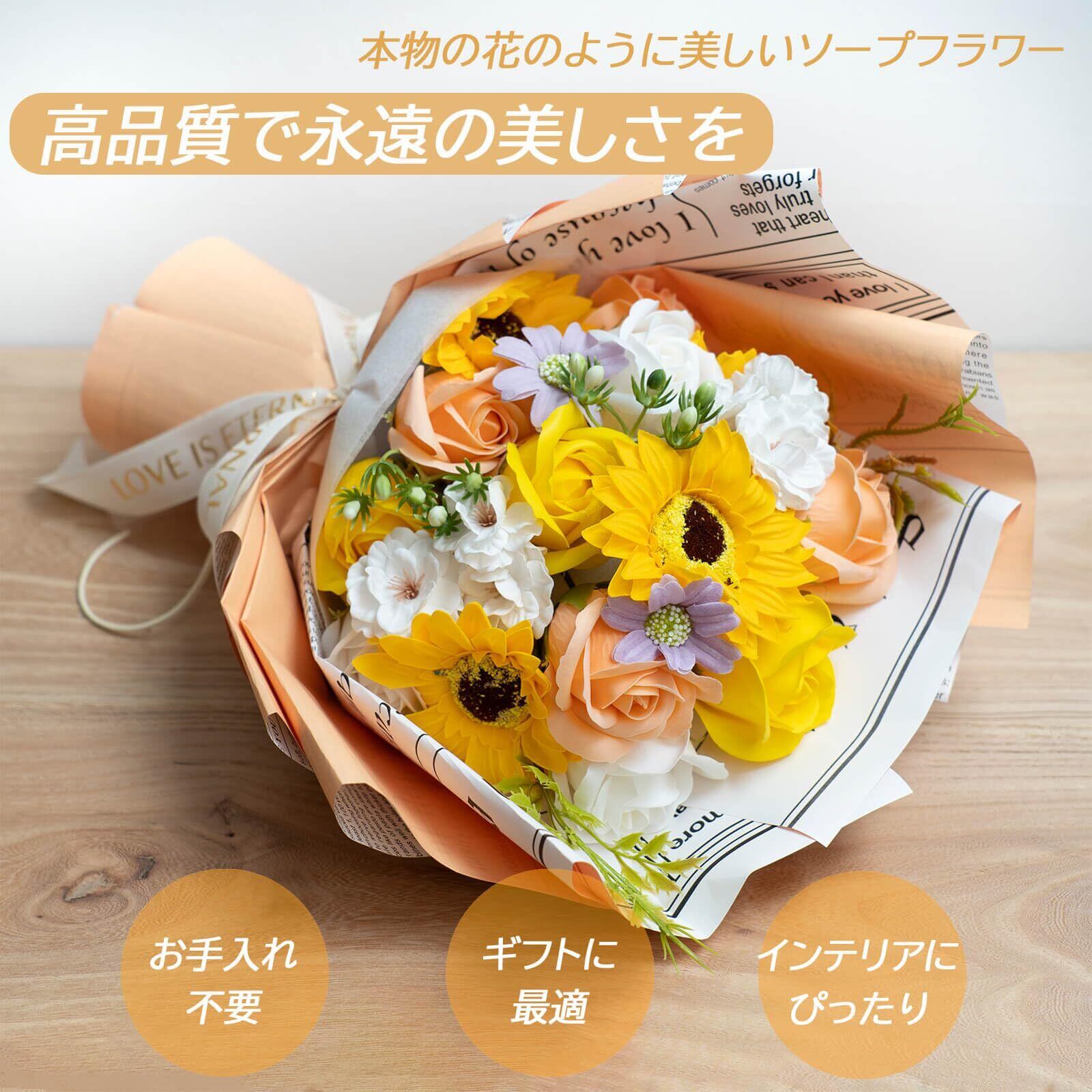 ソープフラワー ギフト 造花 花束 プレゼント 石鹸の花 シャボンフラワー インテリア 雑貨 卒業式 開店祝い 母の日 誕生日 結婚祝い 退職祝い 還暦祝い 発表会 ディスプレイ 花 フラワー イエロー ローズ カーネーション 薔薇の花 アレンジ 枯れない そのまま飾れる