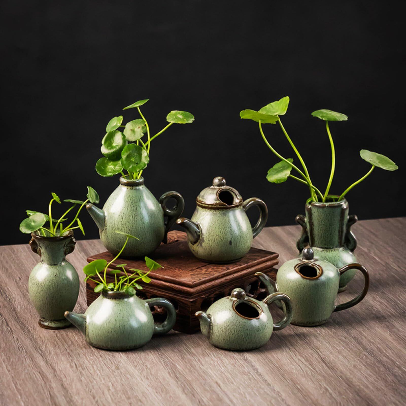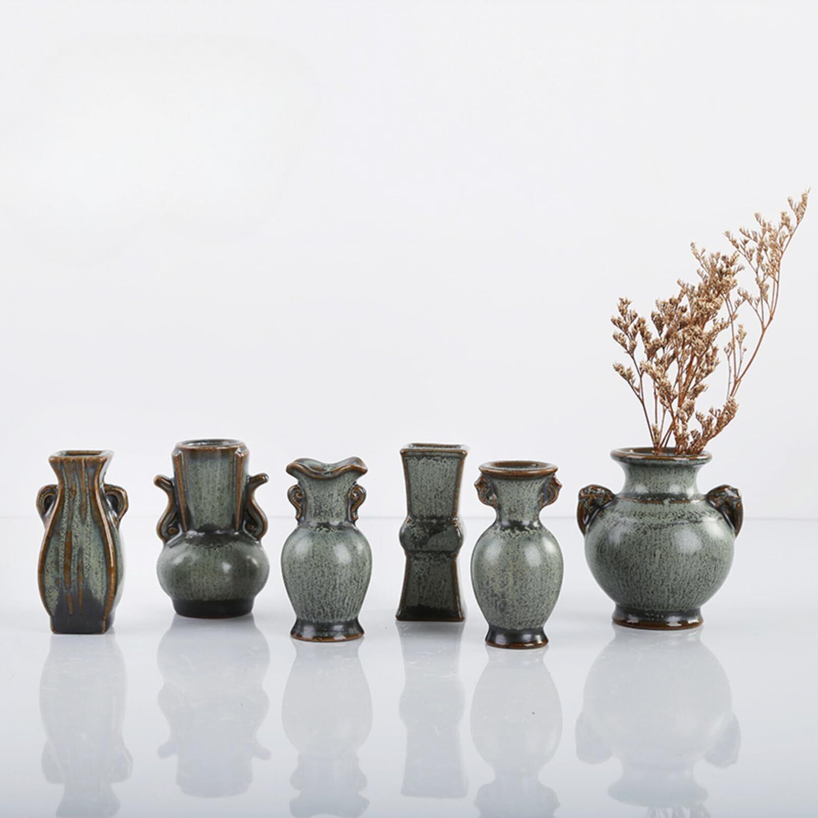【特価商品】花瓶 ミニ花器 陶器 花器 一輪挿し 青銅釉 陶器花瓶 小さい 花瓶 生け花 造花 おしゃれ シンプル インテリア雑貨 飾り瓶 花工芸品 結婚式 家の装飾 かわいい ミニ花器 (4.8*4.8*7.2cm)
