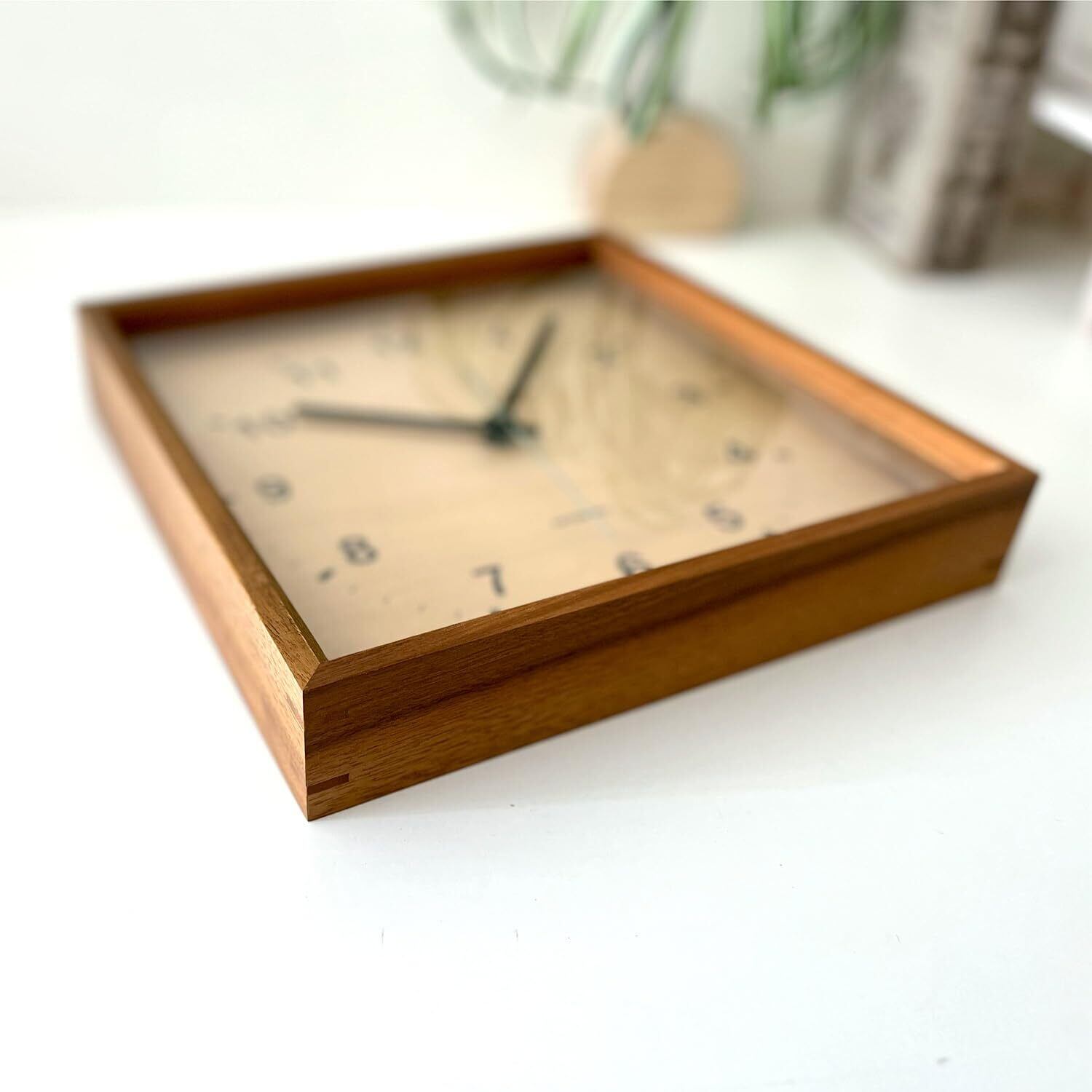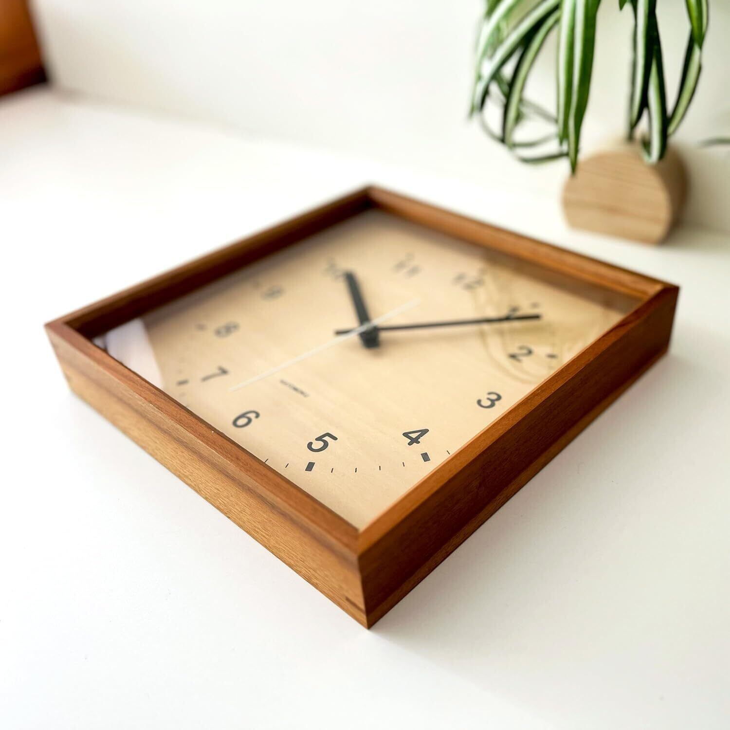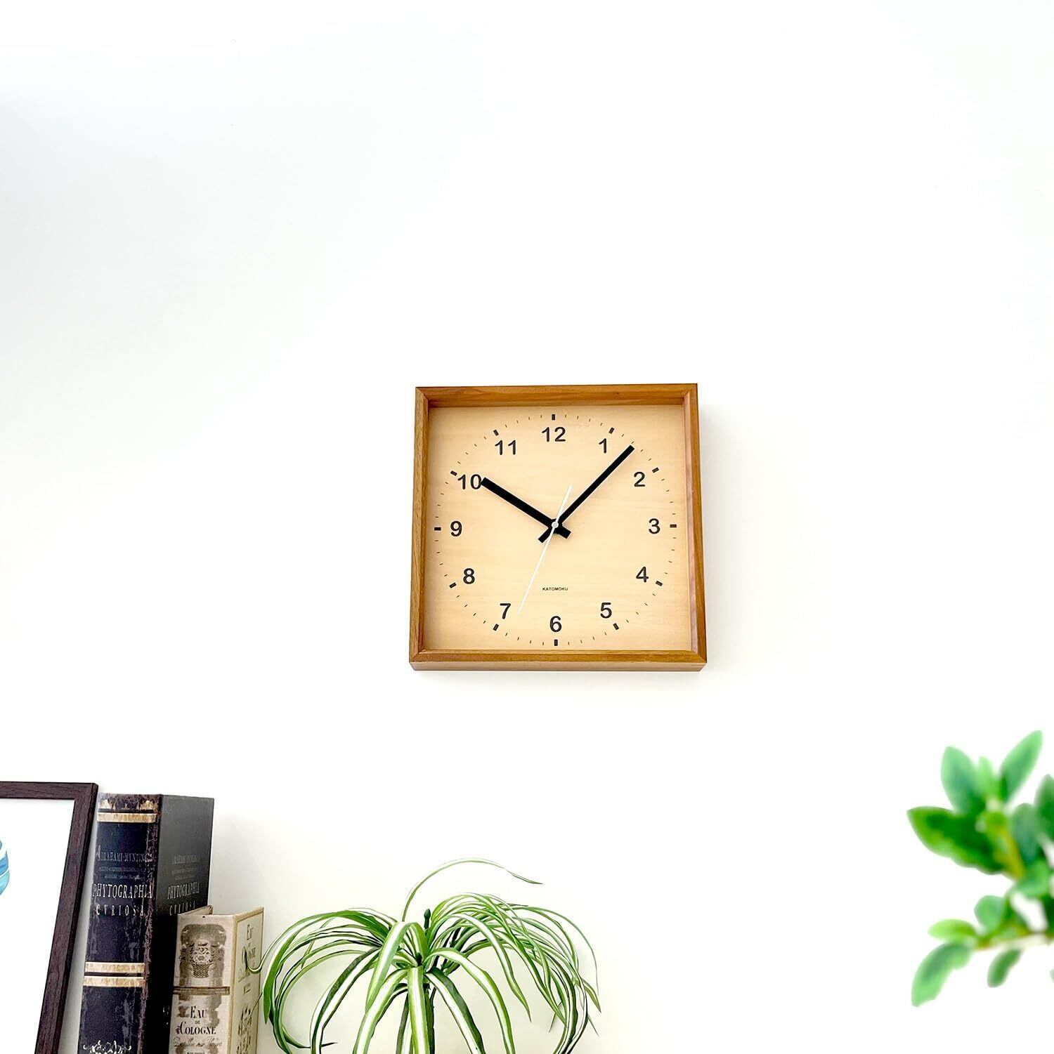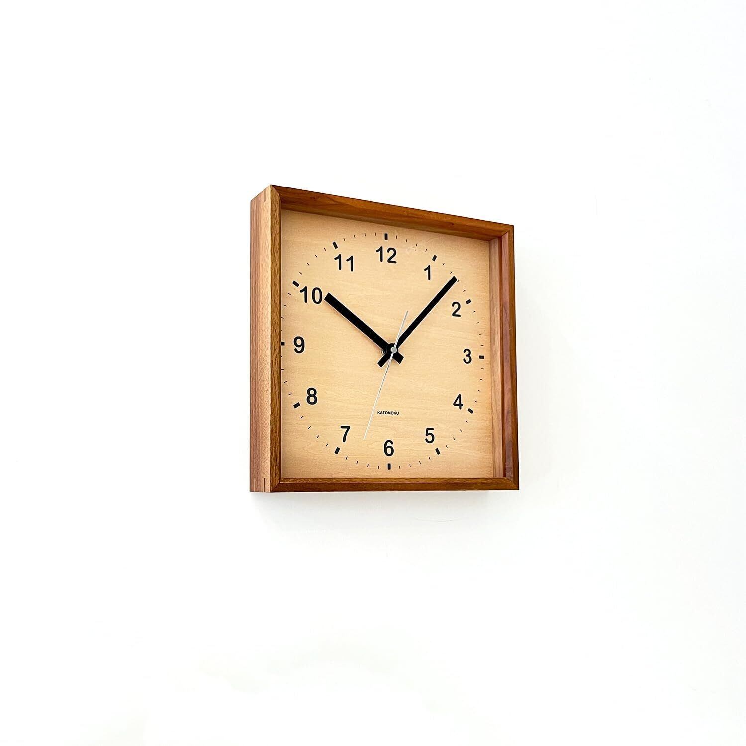 「KATOMOKU」のシンプルスタイル掛け時計にスクエア型が加わりました。細く美しい四角い木枠に、千切り加工を加で強度を高め、繊細ながらも力強さを表現しました。 加藤木工株式会社で一つ一つ手作りの木枠です。