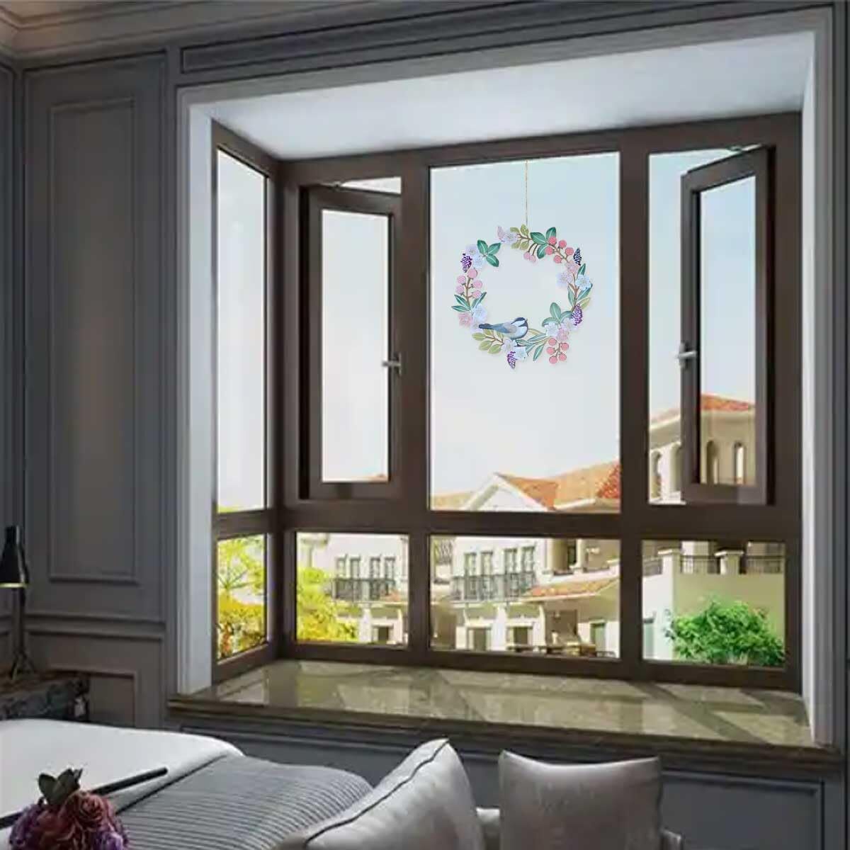 【春の雰囲気満々】リースにはヤマガラをモチーフにした錬鉄製のアンティーク調デザインです。さりげない存在感でお部屋のインテリアに馴染み、空間をオシャレにしてくれます。窓、壁、玄関などに掛けられ、温かみのある雰囲気を高め、また、背景として、よりおしゃれな写真を撮ることもできます。