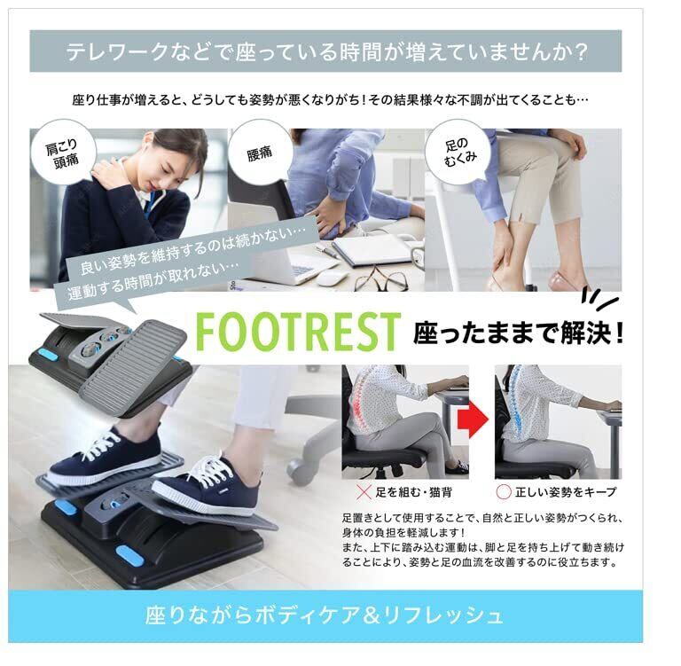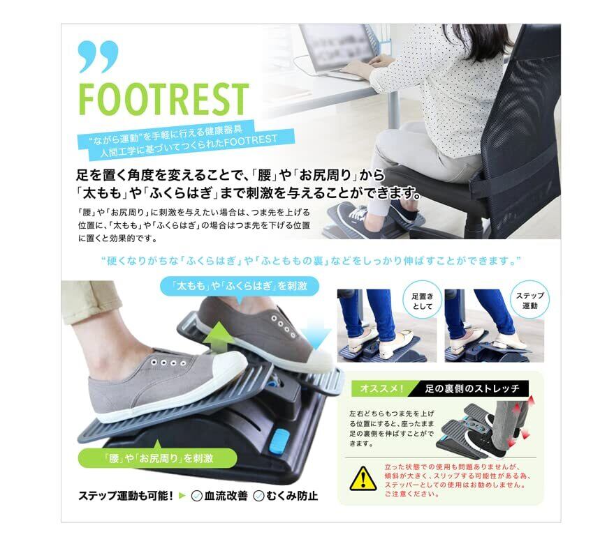 人間工学的なデザインで造られたフットレスト、テレワーク向け健康アイテム。