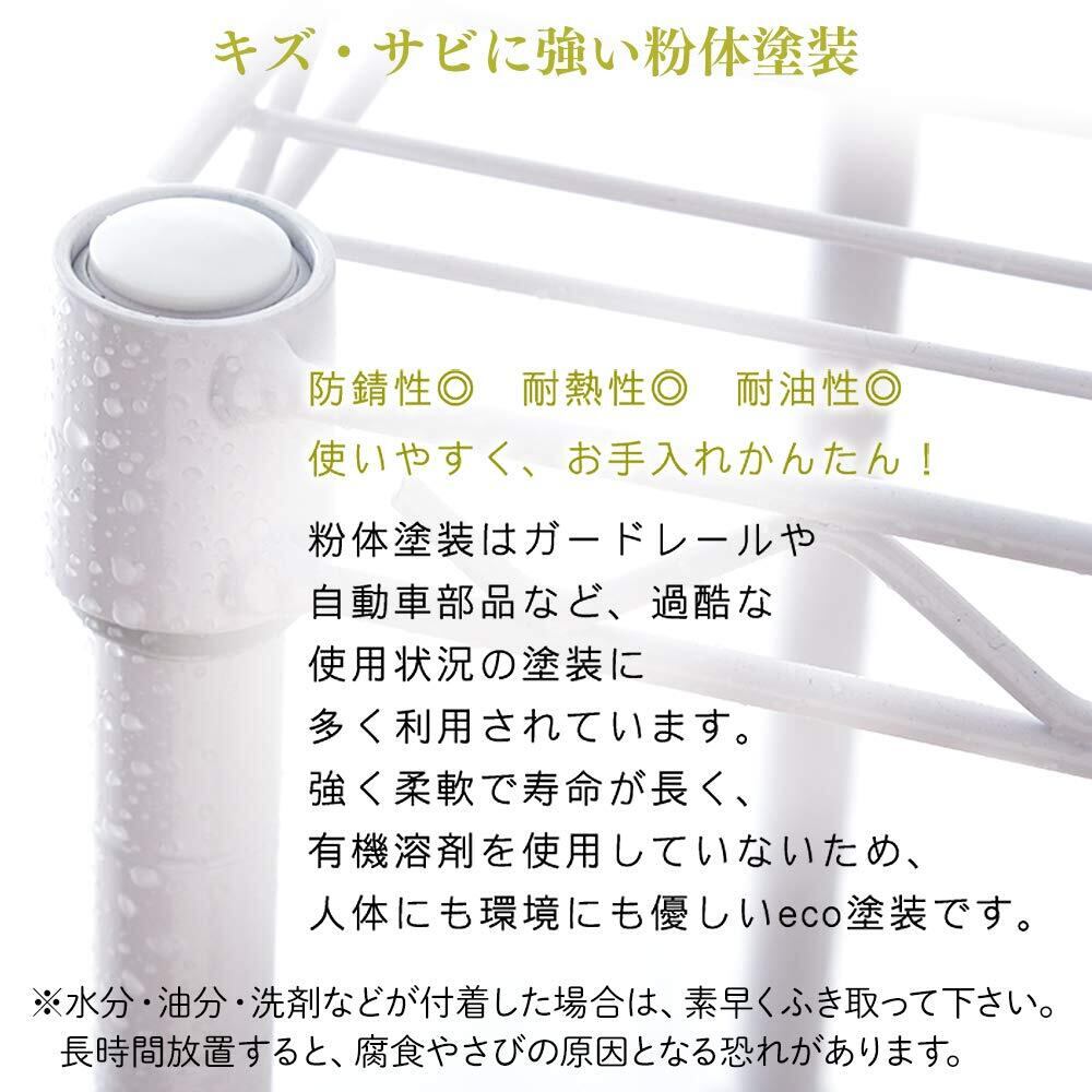 主要材質/木天板:MDF、スチール(粉体塗装)、合成樹脂化粧繊維板(PVC)/棚板・ポール:スチール(粉体塗装)/棚板固定部品:ABS樹脂:アジャスター:スチール、ナイロン樹脂