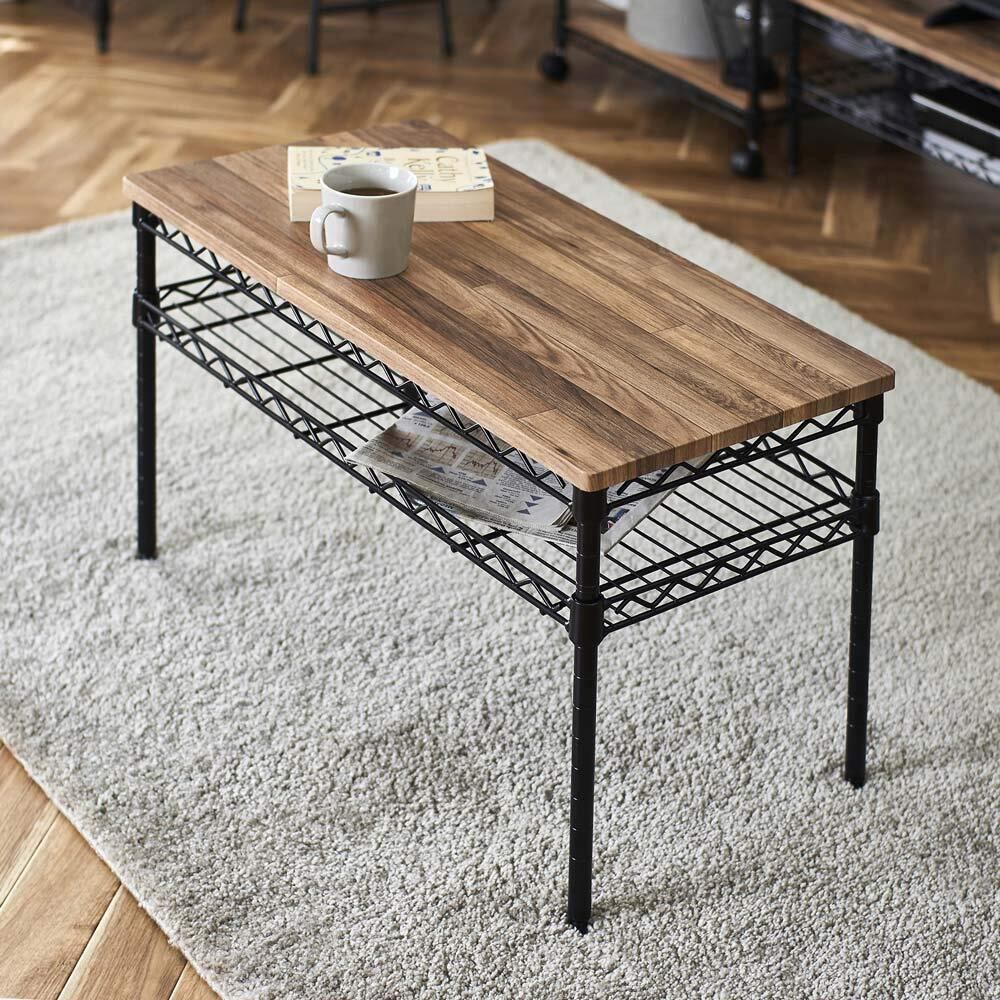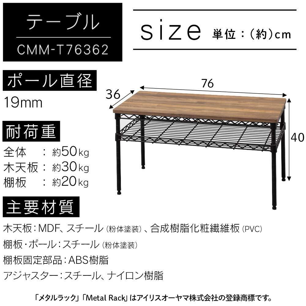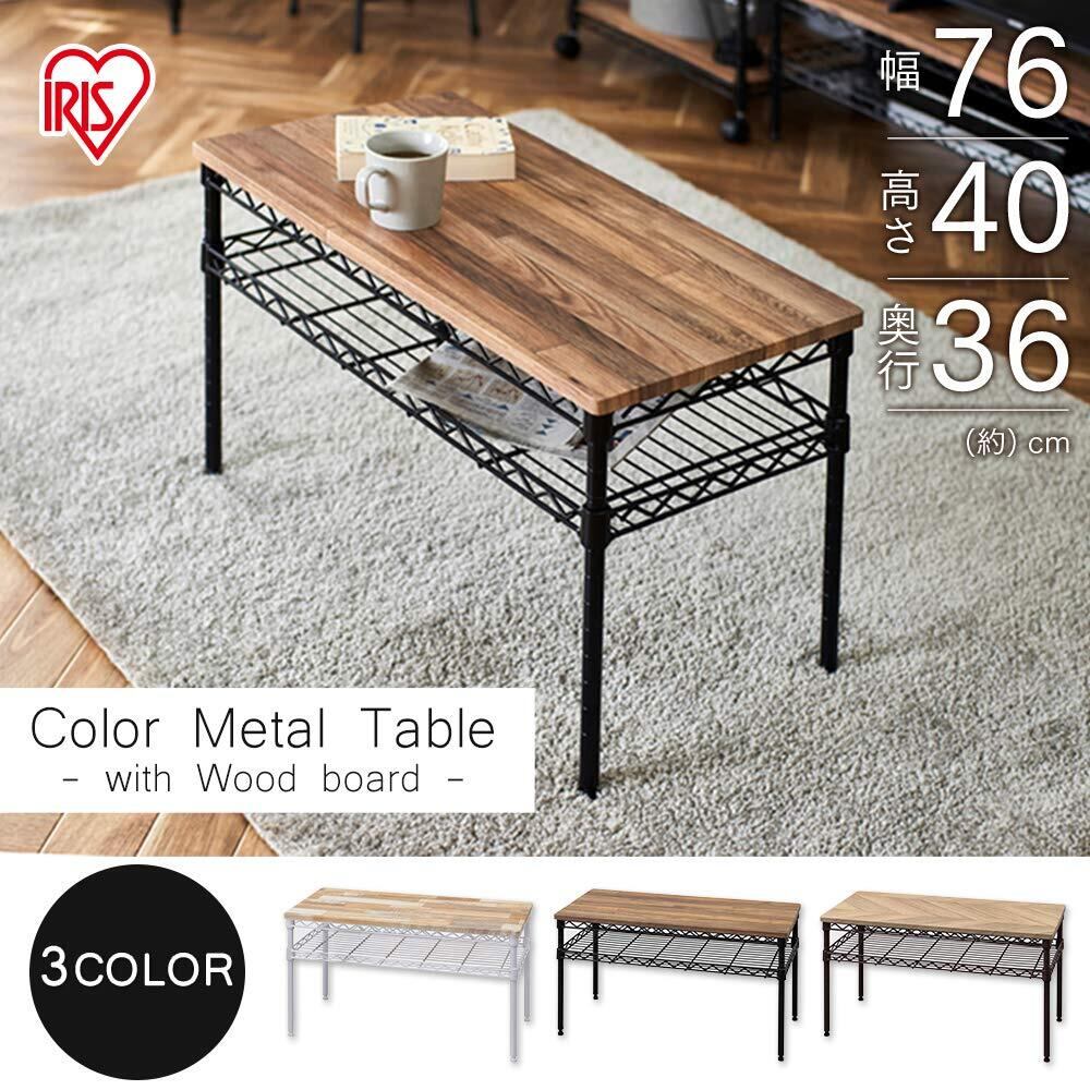 【特価商品】アイリスオーヤマ テーブル 収納付き ノートパソコンも置ける 木目調 おしゃれ テレワーク推奨 カラーメタルラック 幅76×奥行36㎝ CMM-T76362 ブラック