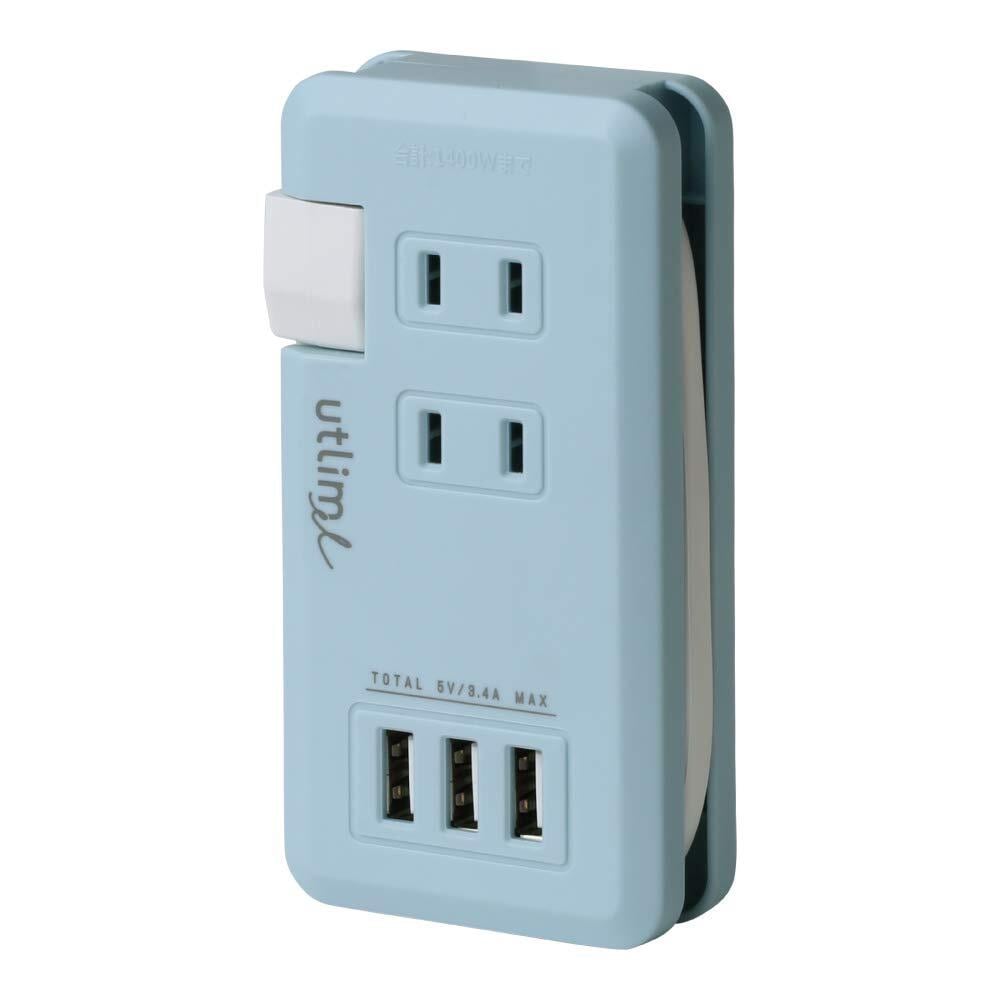 ソニック ポータブルコンセント ユートリムエル USBポート付 UL-5010-LB ライトブルー