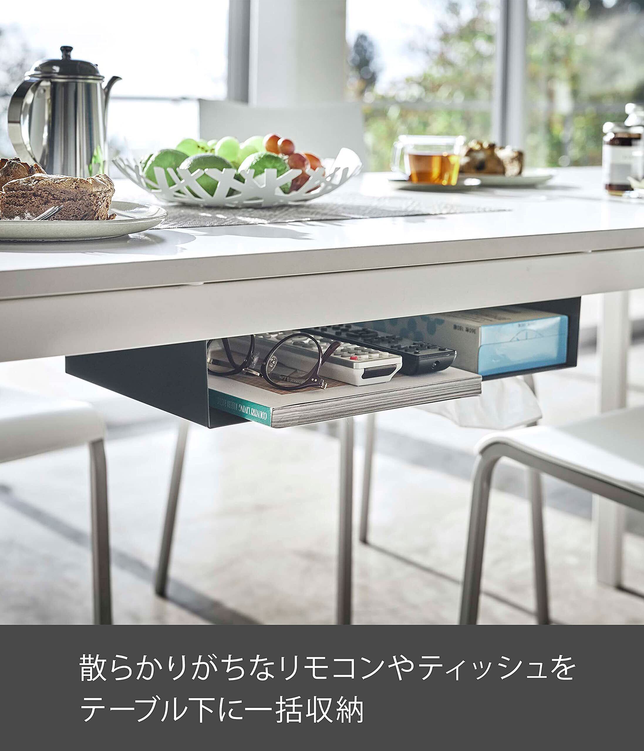 山崎実業(Yamazaki) テーブル下 収納ラック ブラック 約W44XD25XH7.2cm タワー ティッシュ リモコン 一括収納 5482