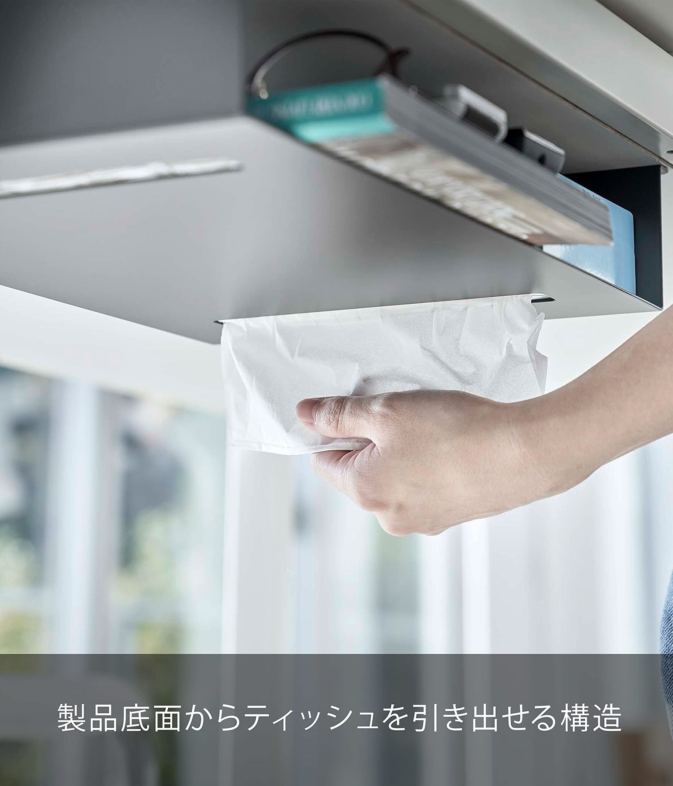 製品底面からティッシュを引き出せて便利。