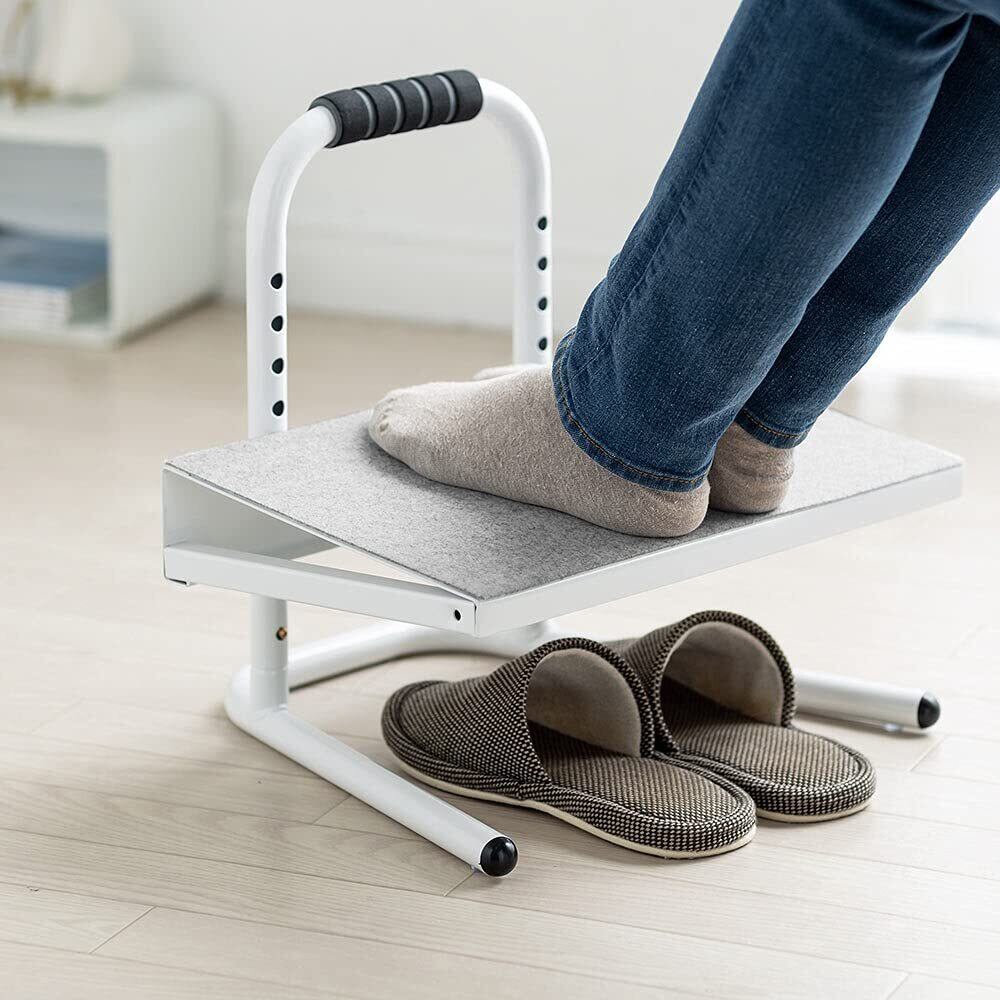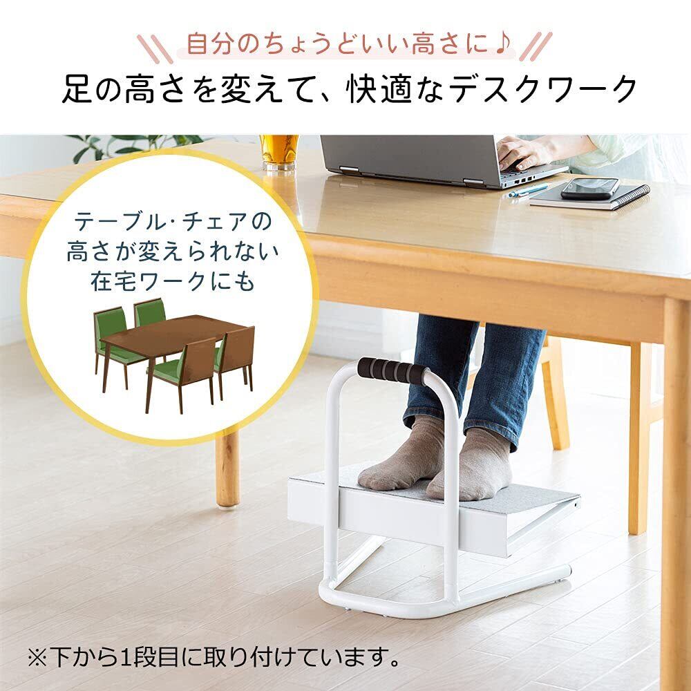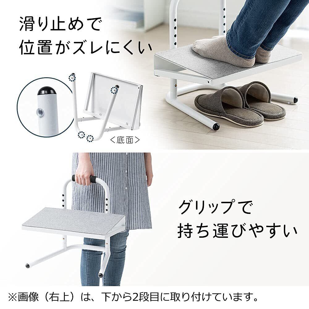 【人気商品】フットレスト デスク下 足置き台 高さ6段階 幅40cm 奥行35cm スチール製 フェルト付き テレワーク ホワイト EEX-FR004WH