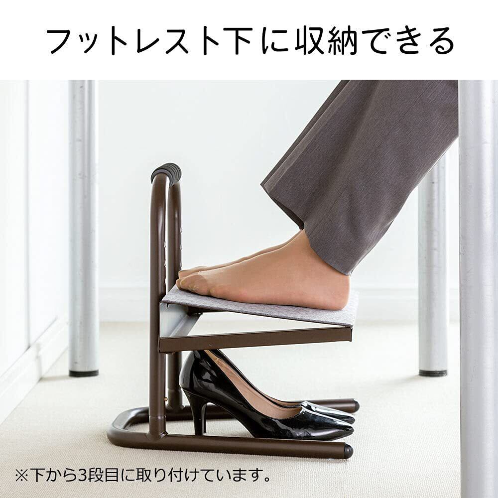 フットレストの下の隙間に、靴やスリッパを収納可能です。底面には滑り止めがあり、フットレストの位置がズレるのを防ぎます。