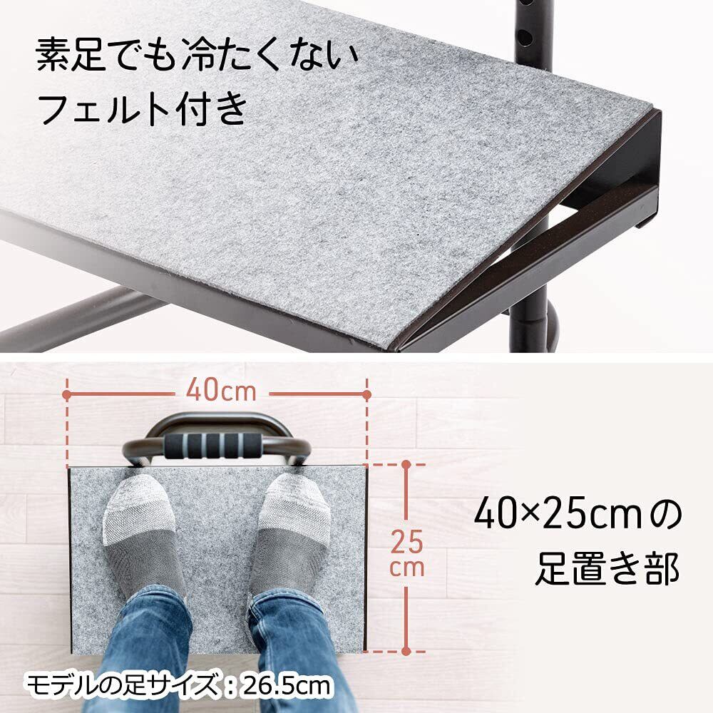 移動させやすいグリップ付きです。素足でも乗せやすいフェルト付きです。横幅40cm×奥行き25cmの足置きです。