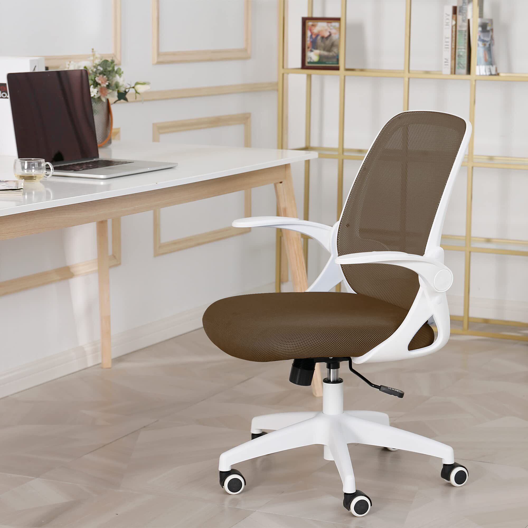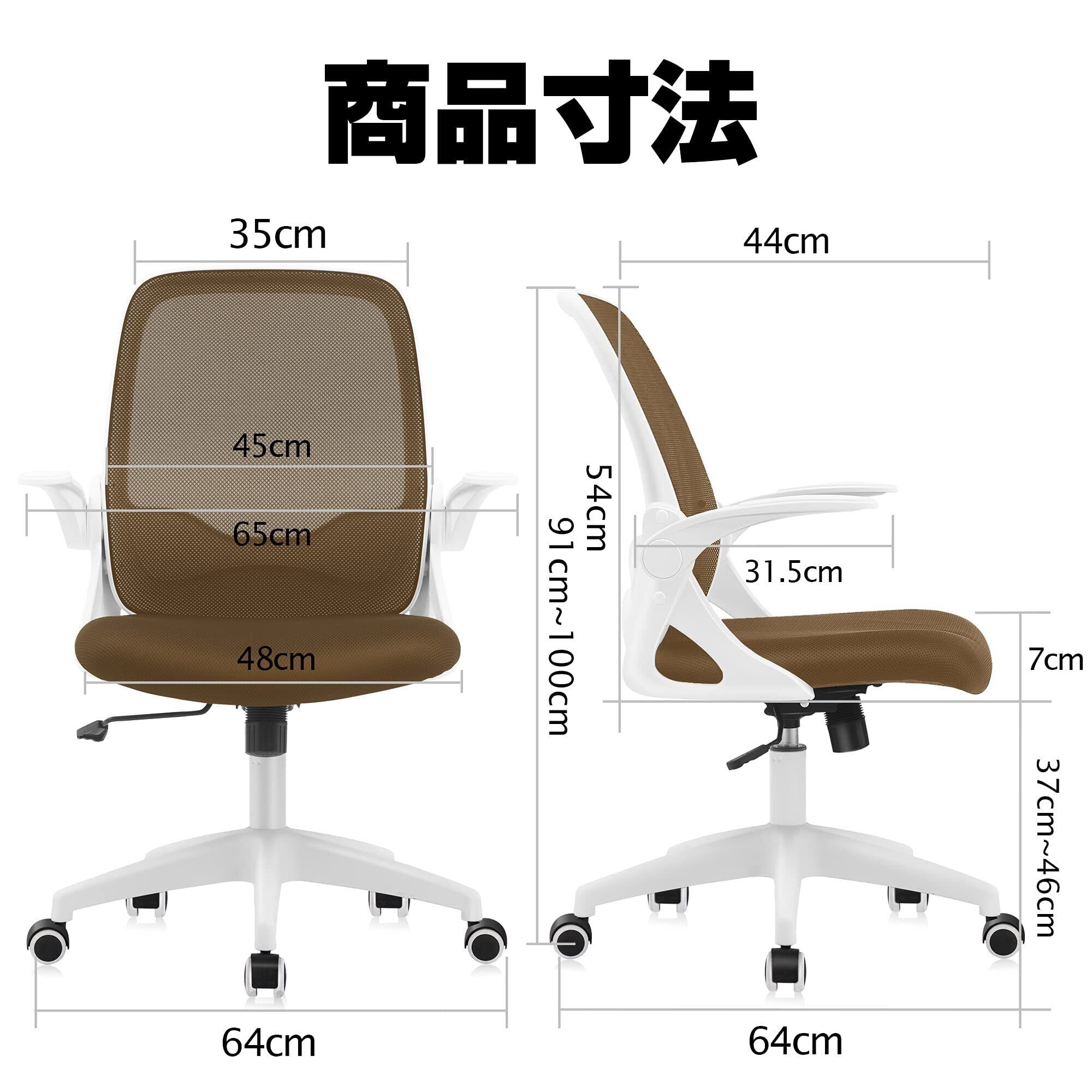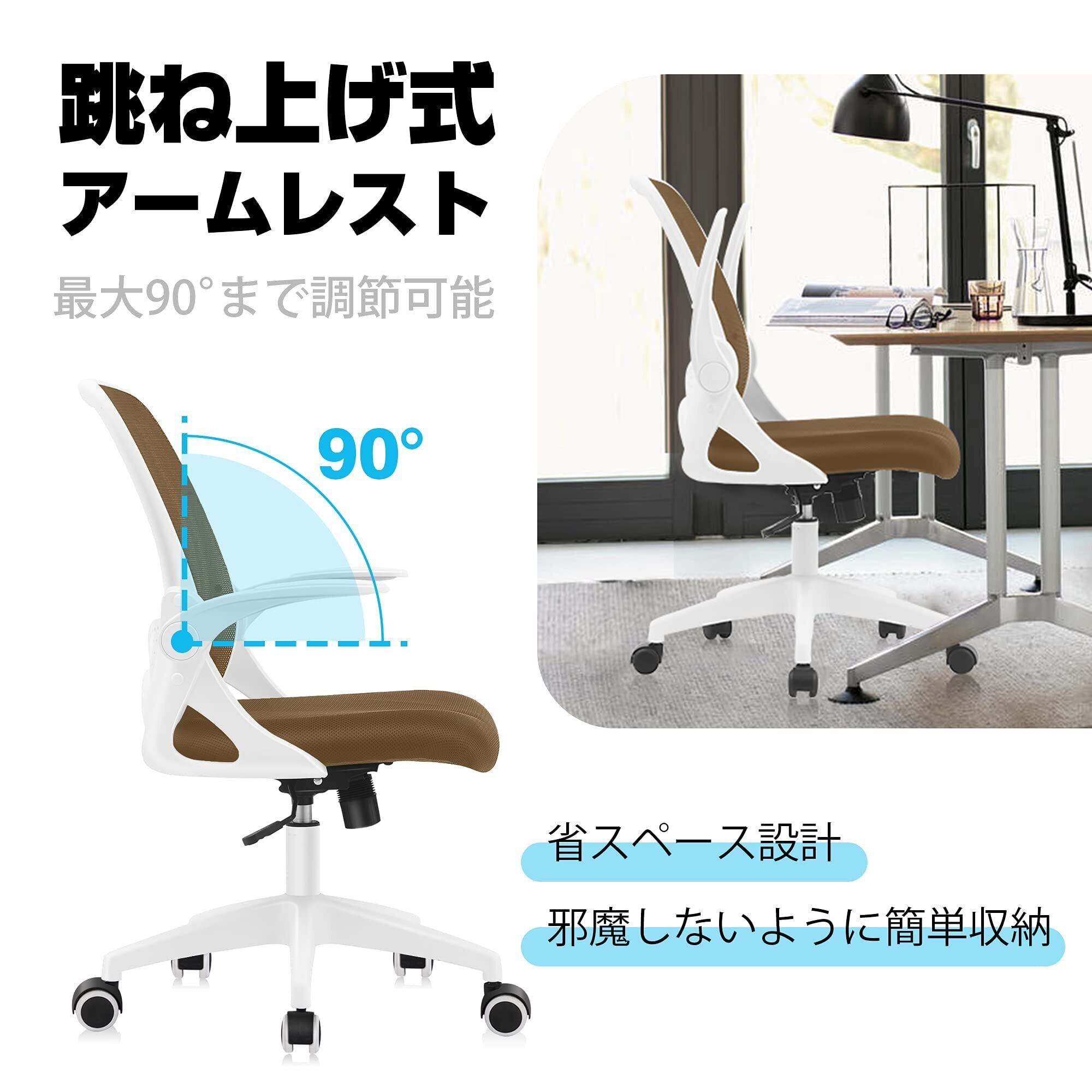 KERDOM メッシュ椅子 テレワーク オフィスチェア 跳ね上げ式アームレスト 疲れない デスクチェア 椅子 パソコン ワークチェア デスクチェア おしゃれ 勉強 学習 ブラウン KD933-Brown