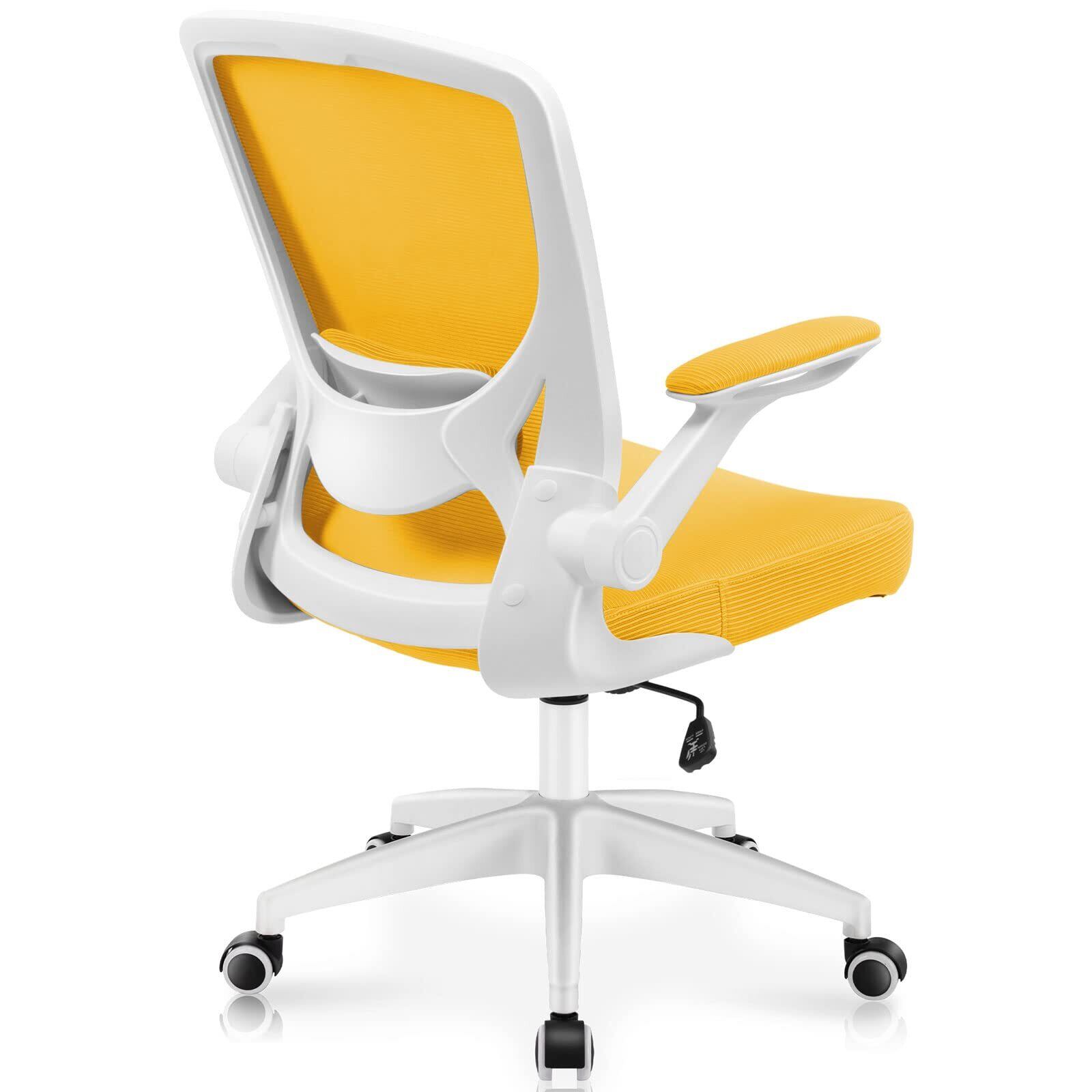 KERDOM デスクチェア 椅子 パソコン テレワーク 椅子 オフィスチェア 疲れない ワーキングチェア 人間工学 勉強 学習 ランバーサポート付き 360度回転 腰に良い 人気 おしゃれ イエロー KD9060-Yellow