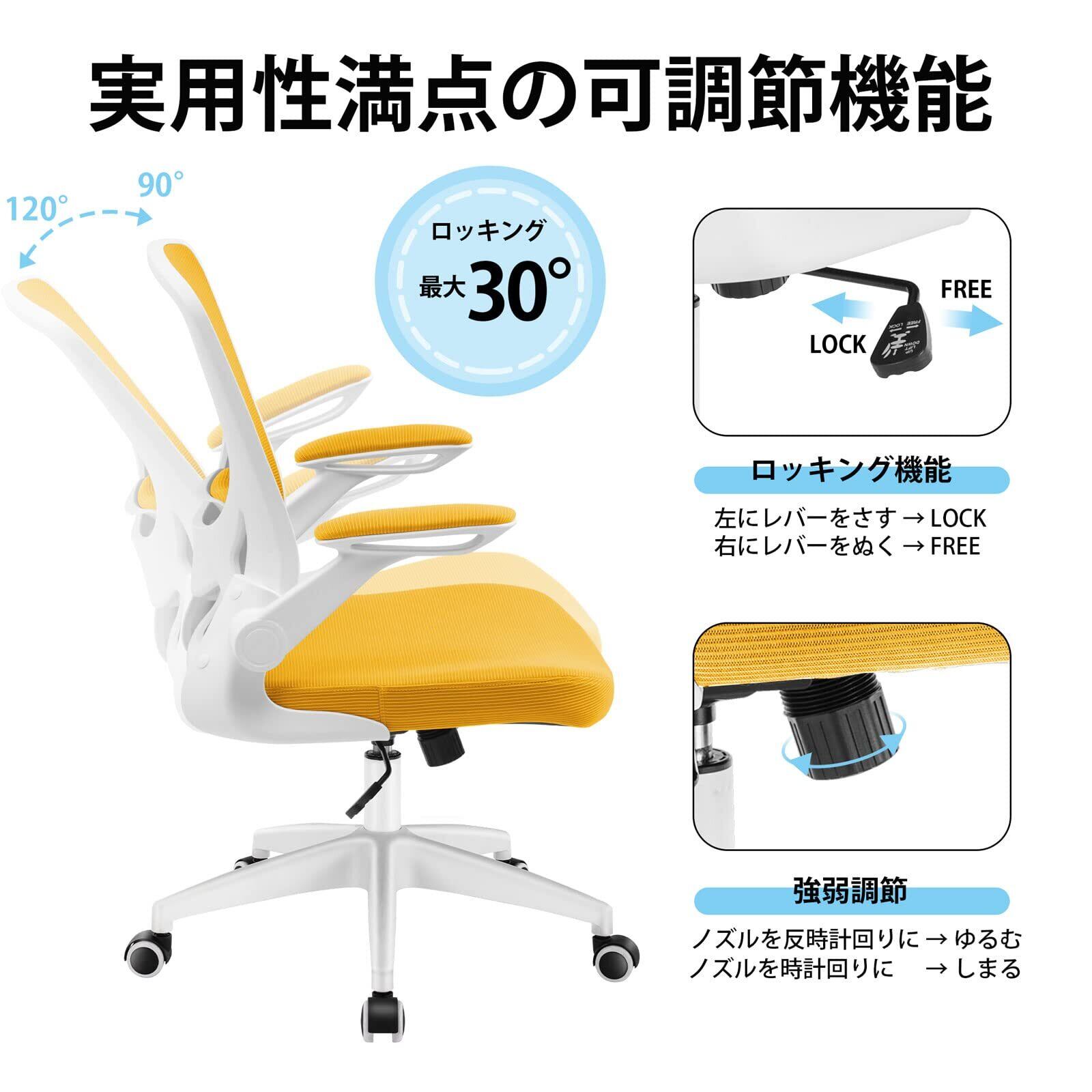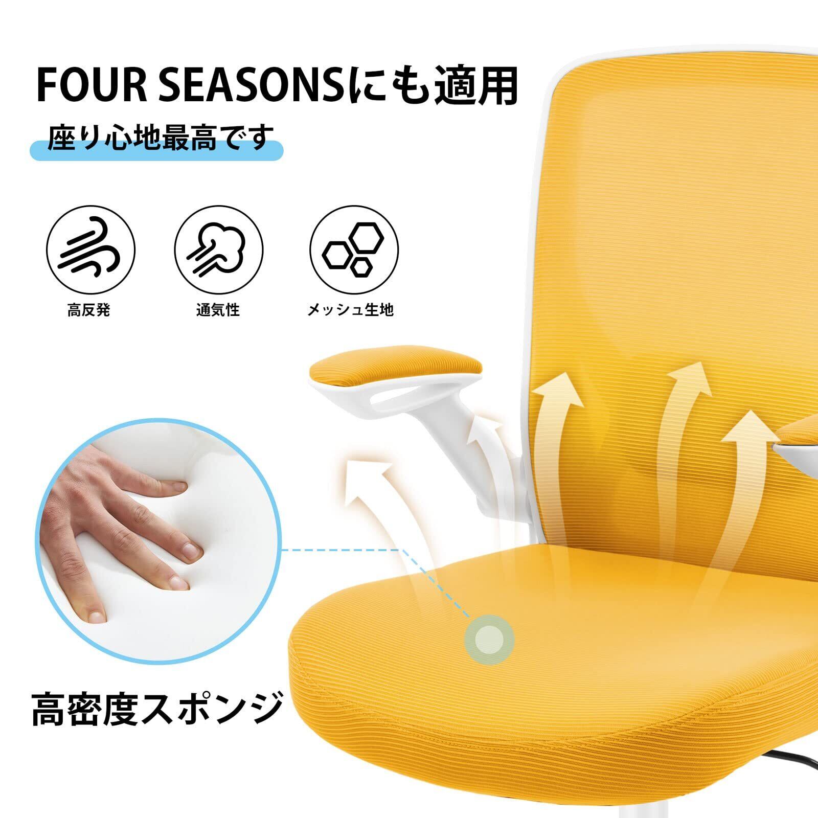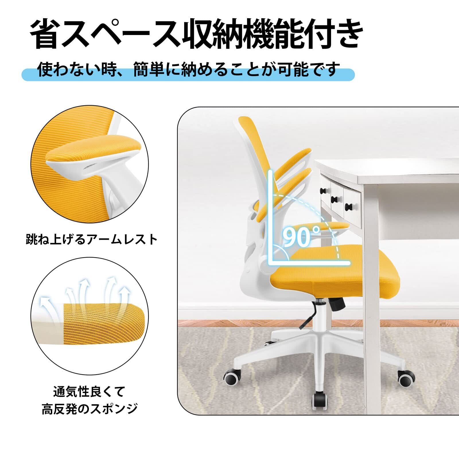 【数量限定】KERDOM デスクチェア 椅子 パソコン テレワーク 椅子 オフィスチェア 疲れない ワーキングチェア 人間工学 勉強 学習 ランバーサポート付き 360度回転 腰に良い 人気 おしゃれ イエロー KD9060-Yellow