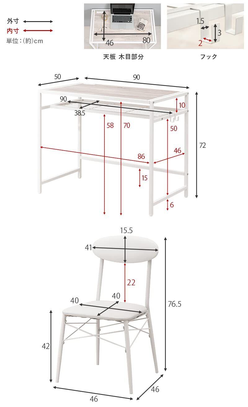【本体サイズ】デスク:(約)幅90×奥行50×高さ72cm / チェア:(約)幅46×奥行46×高さ76.5×座面高42cm
