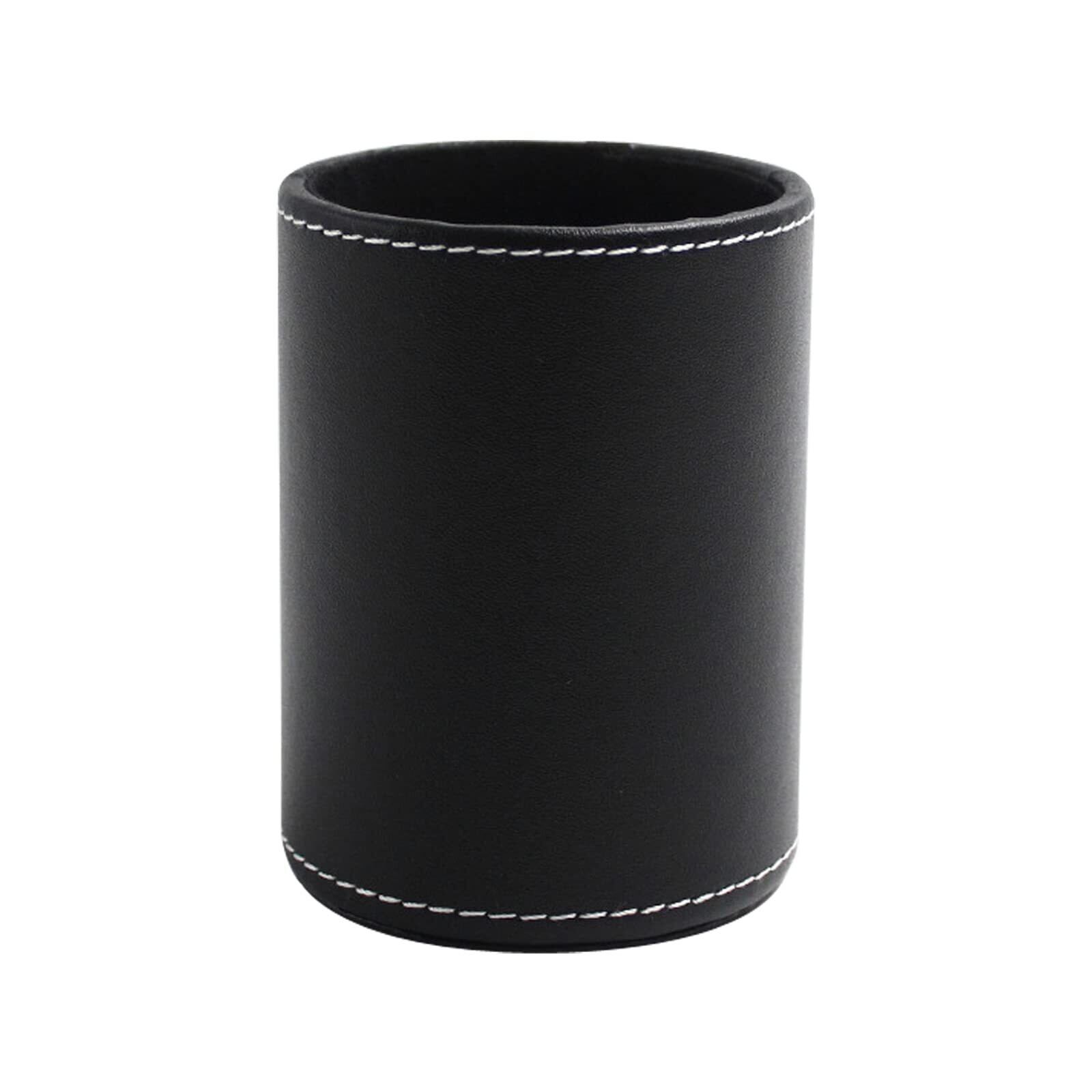 ペン立て ペンスタンド 円柱形 レザー 卓上収納 オフィス テレワーク おしゃれ (ブラック)