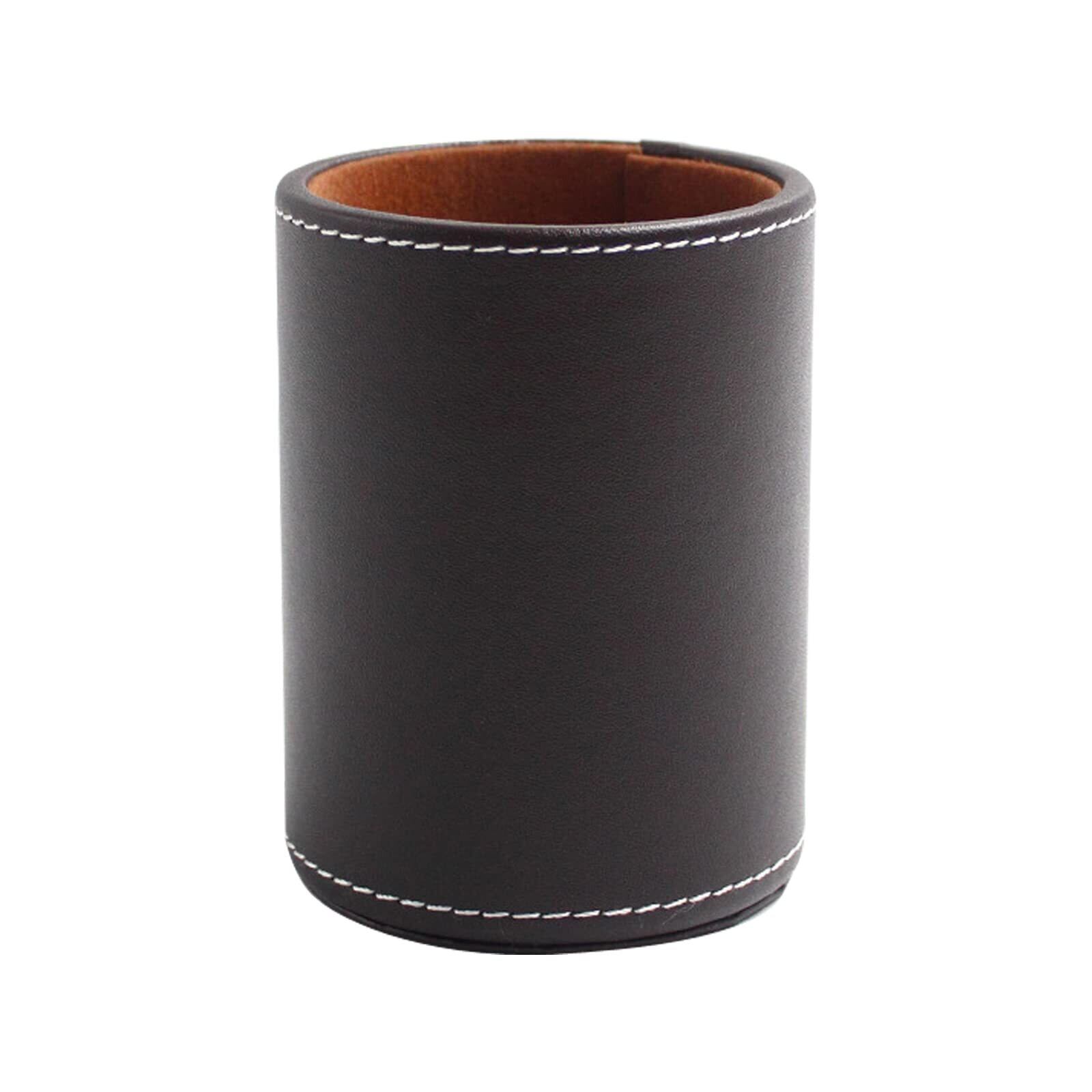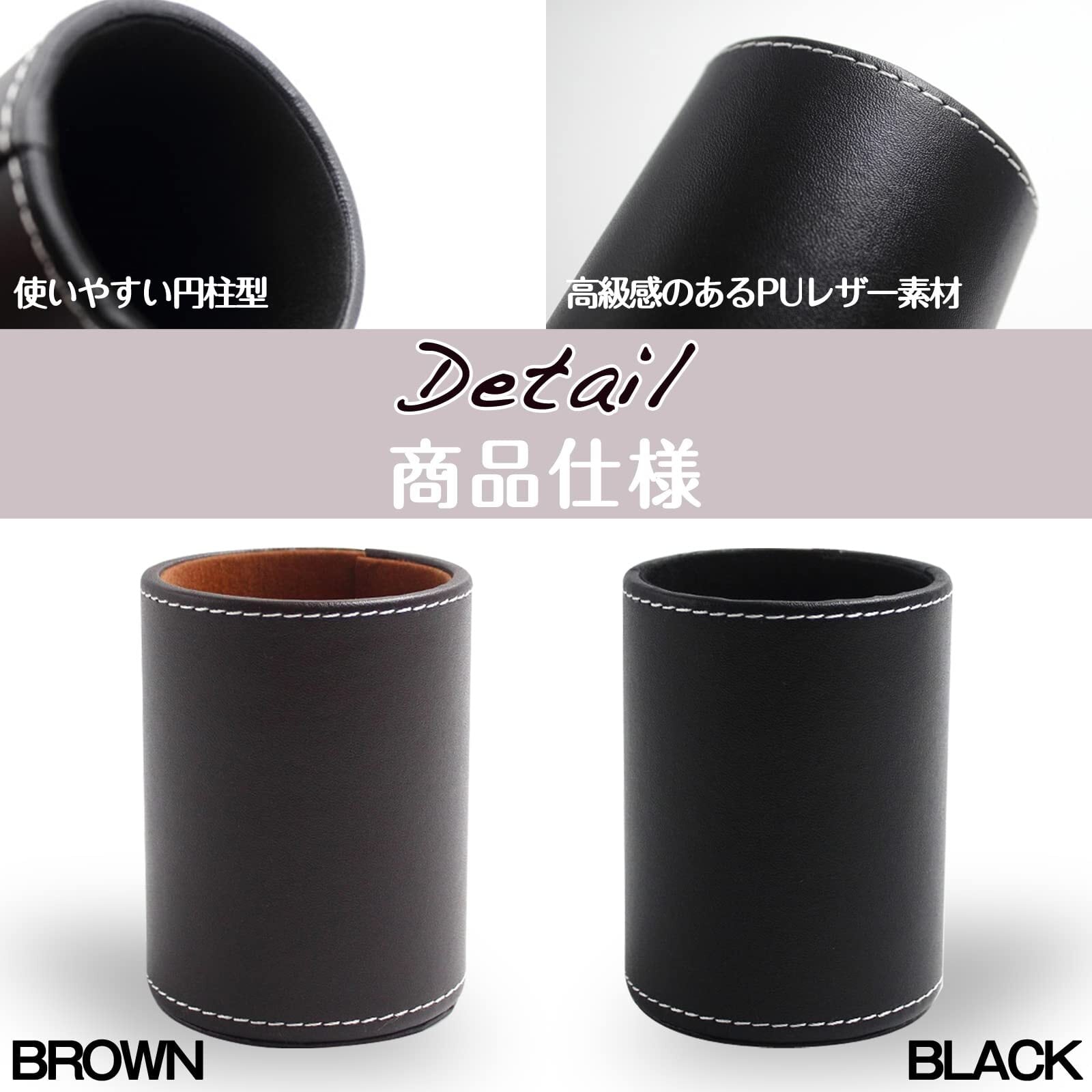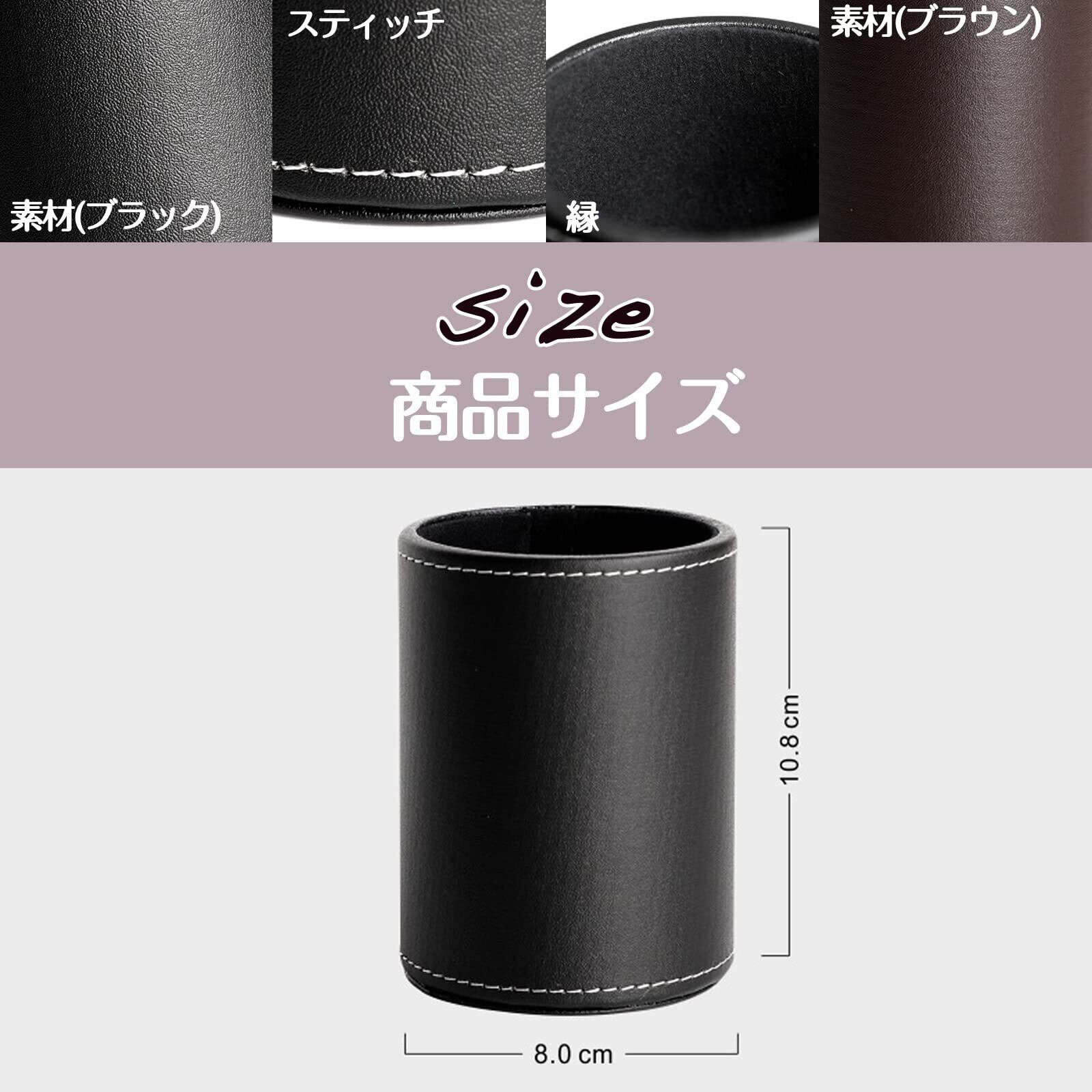 ペン立て ペンスタンド 円柱形 レザー 卓上収納 オフィス テレワーク おしゃれ (ブラウン)