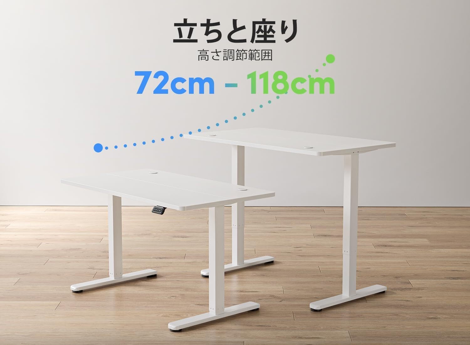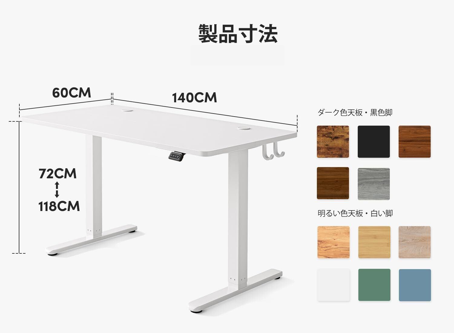 【本体サイズ】*天板サイズ:幅140cmx奥行60cm *昇降範囲:72cm〜118cm(天板とアジャスターを除く) *モニターアーム取り付け可 *お客様組み立て品です