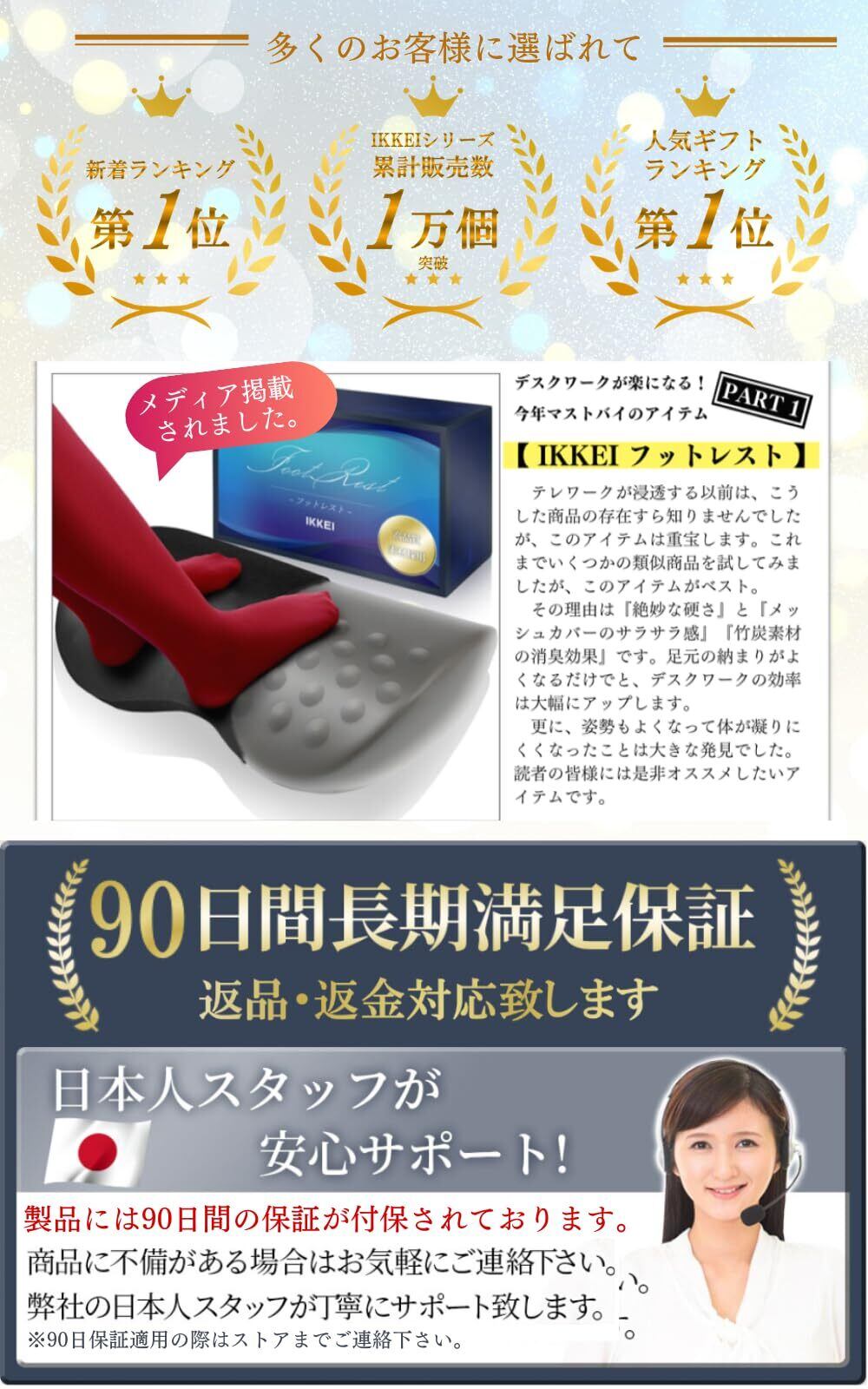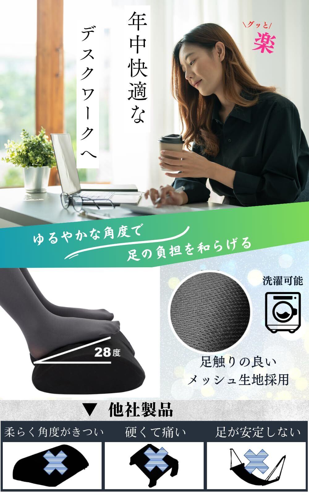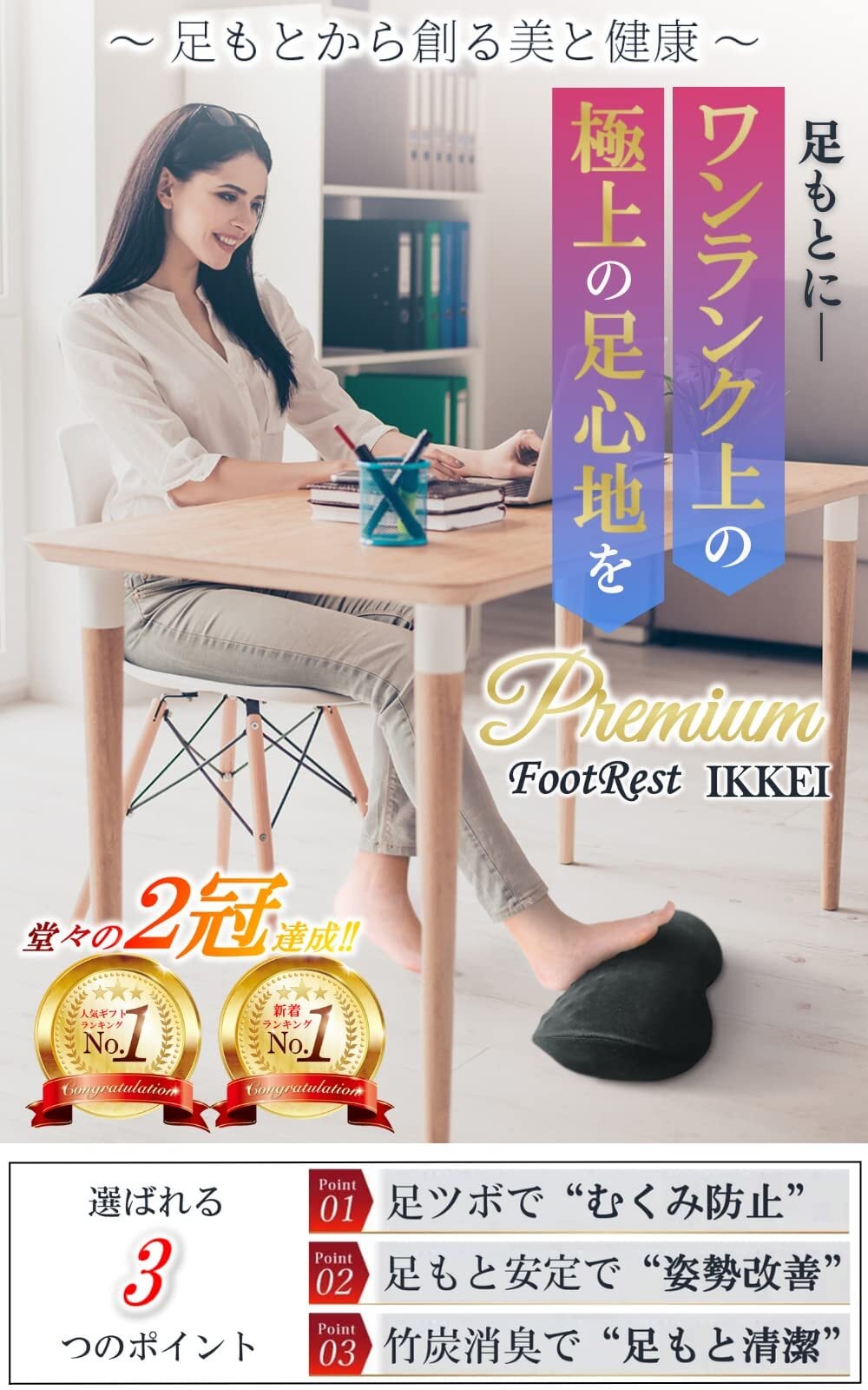 【硬め×足ツボ×竹炭配合】IKKEI フットレスト デスク下 足置き台 足枕 【美容家推薦】幅広43.5㎝ 年中快適